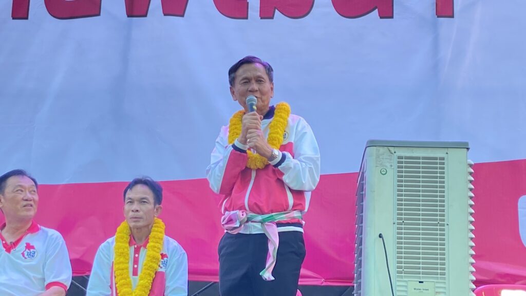 หายไปไหนหมดไม่รู้ วันนี้ ชทพ.อยากมาพัฒนา จ.กาฬสินธุ์ให้เป็นเหมือนที่นายบรรหารทำที่ จ.สุพรรณบุรี ทั้งนี้ ตนกล้าวทิ้งท้ายว่า วันเลือกตั้งจะมีขึ้นในวันที่ 14 พ.ค. ขอให้เลือกคนที่เรารัก เลือกพรรคที่เราชอบ มาเลือกคนที่เรารัก คือ เลือกนายประภาส และเลือกพรรค ชทพ.ได้หรือไม่ คนชอบบอก ชทพ.เลือกตั้งทีไรจะเป็นรัฐบาลทุกที ถามหน่อยว่ามีพรรคไหนจะเลือกเข้าไปเป็นฝ่ายค้าน