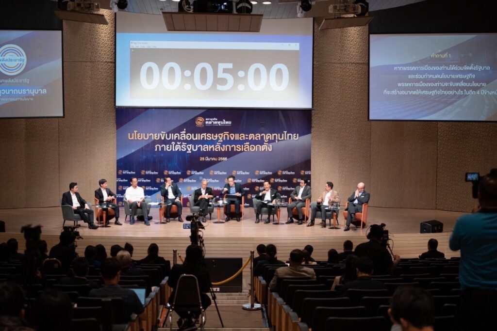 นายพุทธิพงษ์ ปุณณกันต์ ผู้อำนวยการการเลือกตั้งกรุงเทพฯ พรรคภูมิใจไทย ได้เข้าร่วมแสดงวิสัยทัศน์ เรื่อง นโยบายขับเคลื่อนเศรษฐกิจ และตลาดทุนไทย ภายใต้รัฐบาลหลังการเลือกตั้ง ณ หอประชุมศาสตราจารย์สังเวียน อินทรวิชัย อาคารตลาดหลักทรัพย์แห่งประเทศไทย โดยนายพุทธิพงษ์ กล่าวว่า 3-4 ปีที่ผ่านมา เราต้องยอมรับว่า ไม่ว่าใครจะทำธุรกิจอะไรก็ตาม ปัญหาหลักของทุกอุตสาหกรรมไม่ว่าจะขนาดเล็ก ขนาดกลาง ขนาดใหญ่ คือเรื่องหนี้สิน เมื่อพูดถึงภาพรวมของเศรษฐกิจประเทศ การจะทำนู่นทำนี้ จะเดินหน้าเศรษฐกิจอย่างไรก็ได้ มันยังทำไม่ได้ ถ้าครึ่งหนึ่งของคนในประเทศ 11.6 ล้านครัวเรือนยังเป็นหนี้อยู่ในขณะนี้ จะเดินหน้าเศรษฐกิจยังไง ต้องปลดล็อก และช่วยดูแลคน 11.6 ล้านครัวเรือนนี้ให้ปลอดจากหนี้ หรือแบ่งเบาภาระผ่อนปรนภาระหนี้สินของเขาให้ได้ก่อน