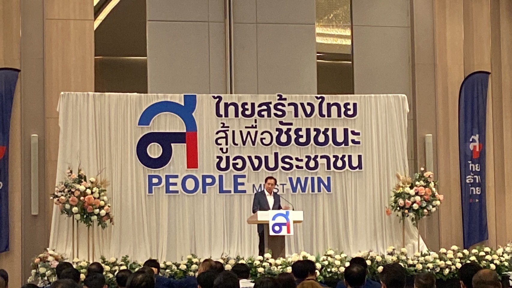 จึงทำให้ประเทศนั้น”รวยกระจุกจนกระจาย” สิ่งที่อยู่ในนโยบายของพรรคทั้งหมดคือการผลักดันประชาชน ตั้งแต่คนทำงานบริษัท พ่อค้าแม่ค้าsme เด็กจบใหม่ รวมไปถึงเกษตรกร 90%ยากจน ในยุคที่เกิดสงครามทางการเมืองทำให้เกิดความเลื่อมล้ำทางสังคม สูงขึ้นติดลำดับโลก เพราะวันนี้ประเทศไม่เหลืออะไรแล้ว ตนอยากเน้นย้ำว่าไทยสร้างไทยคือทางรอดของประเทศไทยและคือทางออกเดียวเท่านั้น อยากฝากถึงประชาชนว่าเราปล่อยพี่น้องประชาชนต่อไปไม่ได้แล้ว