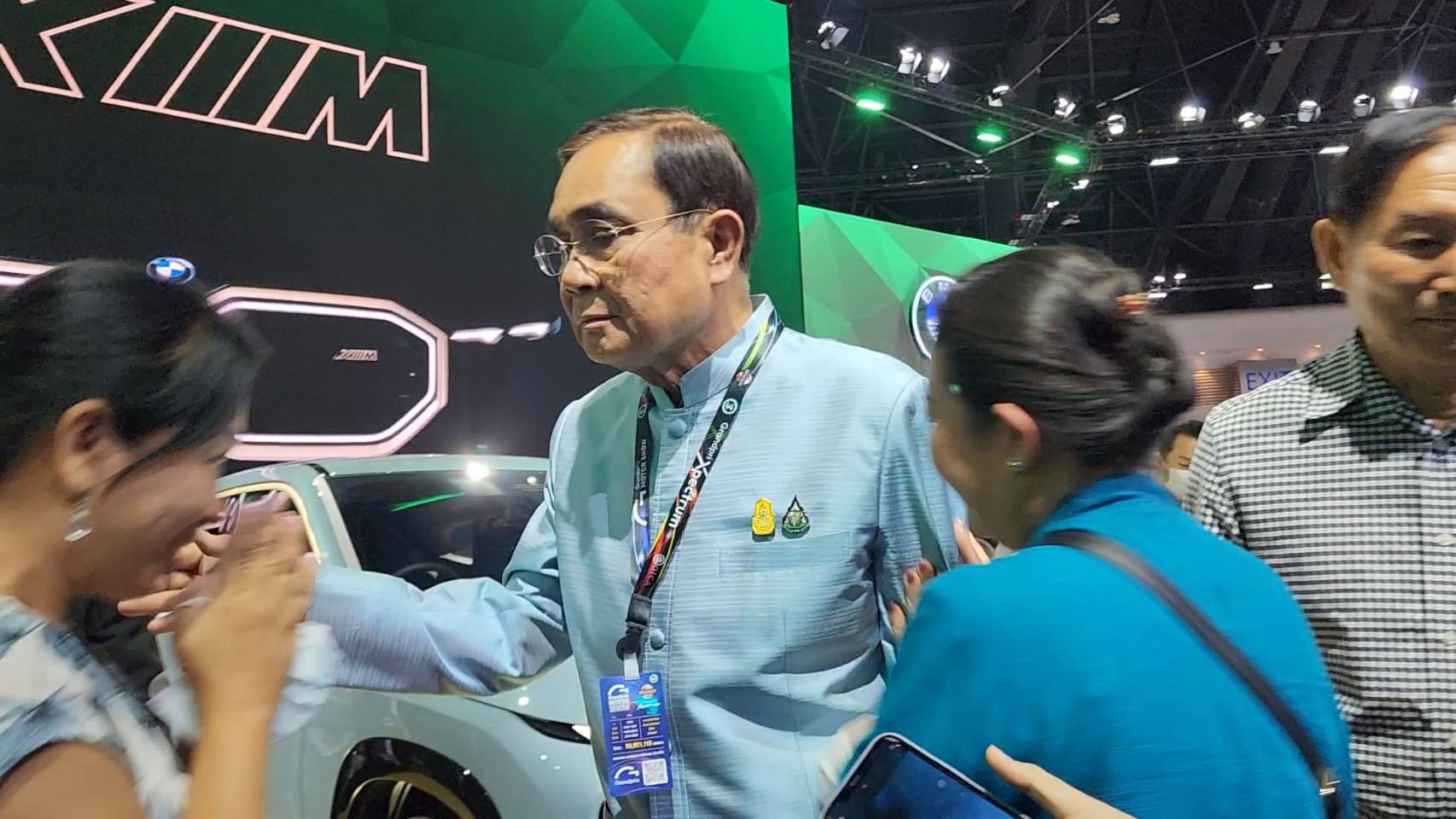 โดยทันที นายกรัฐมนตรี เดินทางมาถึง ได้เยี่ยมชมบูธรถยนต์ จากค่ายต่างๆพร้อมทดลองนั่ง โดยมีประชาชนให้ความสนใจโดยขอถ่ายรูปนายกรัฐมนตรีพร้อมให้กำลังใจ ขอให้นายกรัฐมนตรี สู้ๆ ตัวจริงหล่อกว่าในโทรทัศน์ นอกจากนี้ ยังมีประชาชนให้กำลังใจและบอกรักนายกรัฐมนตรี โดยนายกรัฐมนตรีกล่าว ก็ฝากไว้ด้วยก็แล้วกัน จะทำให้ดีที่สุด