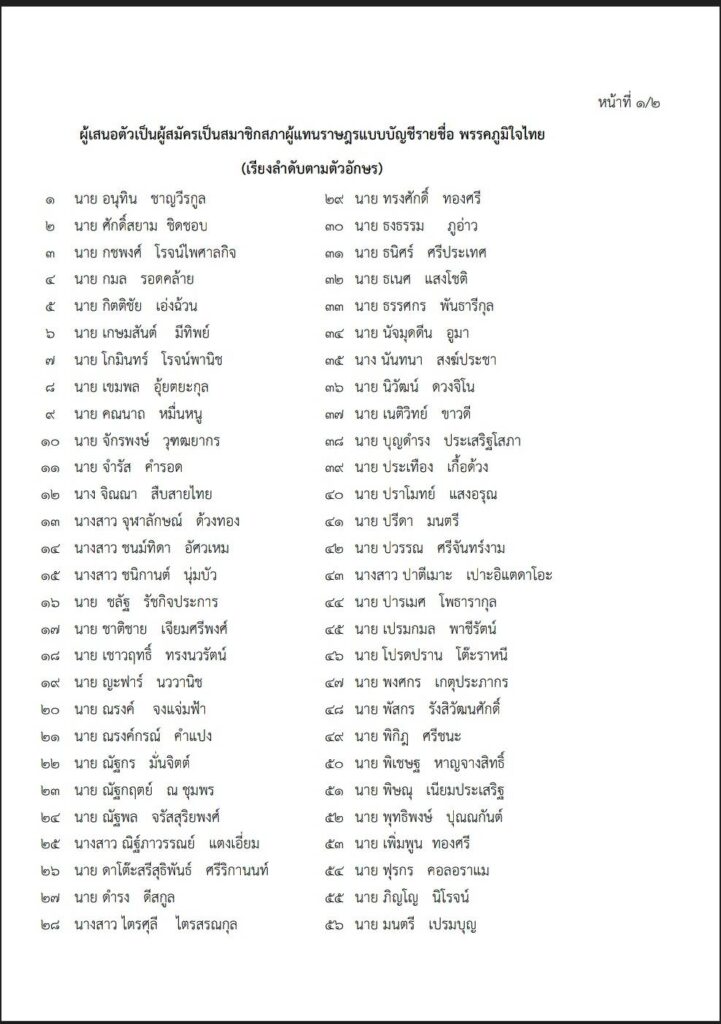 ภูมิใจไทย เปิดชื่อ100 ปาร์ตี้ลิสต์ “อนุทิน”เตรียมนำทีม สมัครส.ส.วันที่ 4 – ขณะเย็นนี้เตรียมขึ้นเวทีปราศรัย ช่วย “เอก สายไหมต้องรอด”