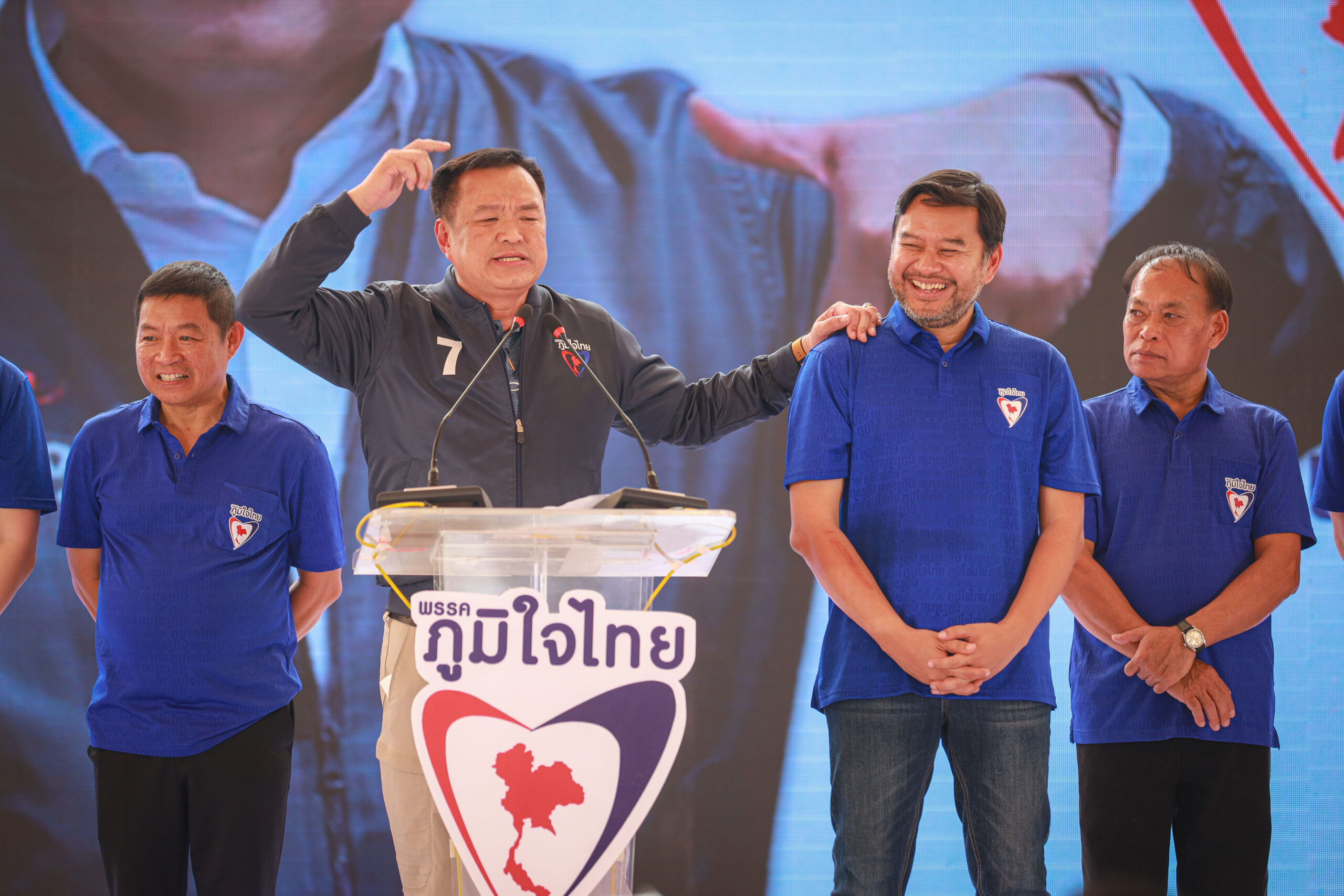 นายอนุทิน ชาญวีรกูล หัวหน้าพรรคภูมิใจไทย และคณะผู้บริหารพรรค อาทิ นายศุภชัย ใจสมุทร นายทะเบียนสมาชิกพรรค และผู้สมัครระบบบัญชีรายชื่อ, นางสาวอนุสรี ทับสุวรรณ ผู้สมัครระบบบัญชีรายชื่อ และนายสามารถ แก้วมีชัย ผู้สมัครระบบบัญชีรายชื่อ