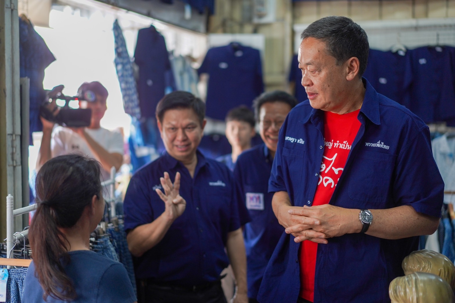 “เศรษฐา” สวมเสื้อม่อฮ่อมควงผู้สมัครส.ส.แพร่เดินตลาดทุ่งโฮ้ง