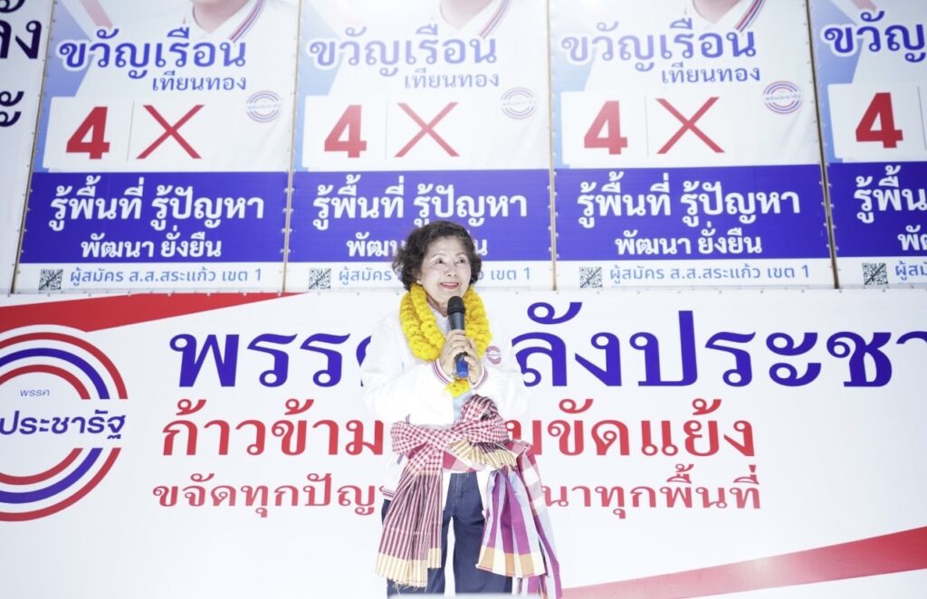 นางขวัญเรือน เทียนทอง ผู้สมัคร ส.ส. สระแก้ว เขต 1 หมายเลข 4 พรรคพลังประชารัฐ พร้อมทีมงานลงพื้นที่ เปิดเวทีปราศรัยหาเสียงครั้งแรก โดยมีครอบครัวตระกูลเทียนทอง มาร่วมให้กำลังใจ