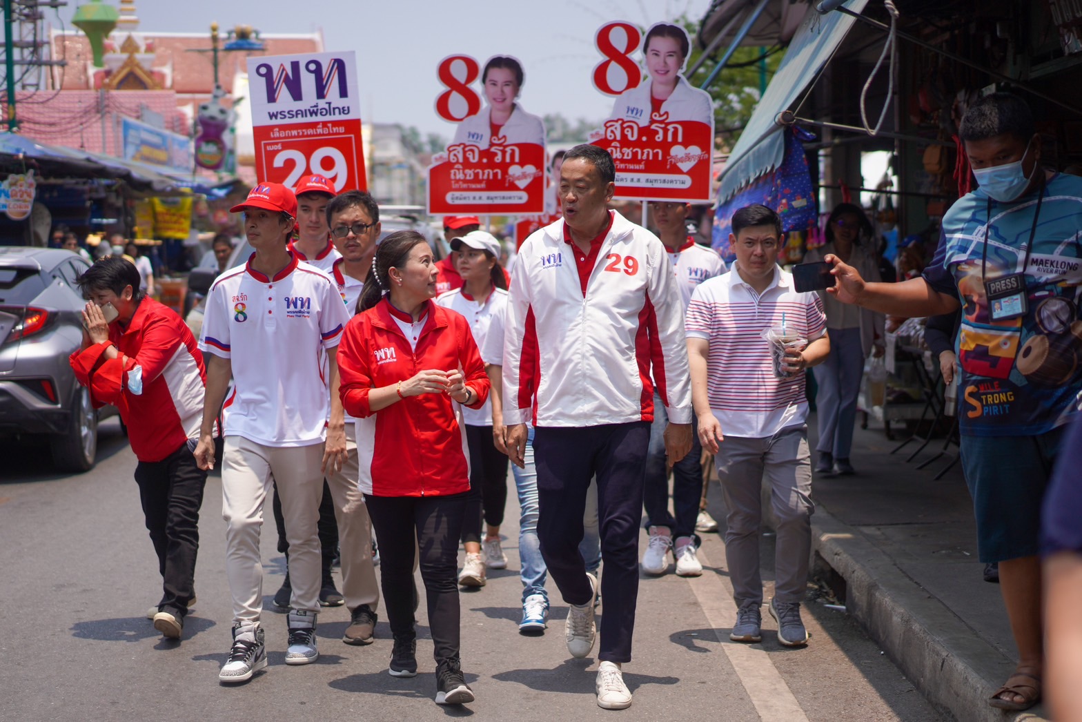 นายเศรษฐา ทวีสิน แคนดิเดตนายกรัฐมนตรี พรรคเพื่อไทย และประธานที่ปรึกษาหัวหน้าครอบครัวเพื่อไทย พร้อมด้วยนายพานทองแท้ ชินวัตร ที่ปรึกษาศูนย์ปฎิบัติการเลือกตั้งส.ส.พรรคเพื่อไทย นายจักรพงษ์ แสงมณี นายทะเบียนพรรคเพื่อไทย น.ส.ลิณธิภรณ์ วริณวัชรโรจน์ รองเลขาธิการ และรักษาการโฆษกพรรคเพื่อไทย พร้อมด้วย น.ส.ณิชาภา โกวิทานนท์ ผู้สมัคร ส.ส.จ.สมุทรสงครามพรรคเพื่อไทย เดินทางมายังสหกรณ์ประมงแม่กลอง เพื่อพบผู้ประกอบการภาคอุตสาหกรรมและหอการค้า จังหวัดสมุทรสงคราม