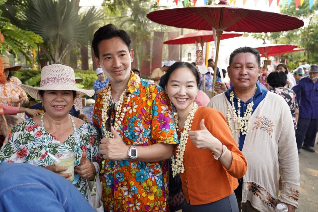 นายพิธา ลิ้มเจริญรัตน์ หัวหน้าพรรคก้าวไกล พร้อมลูกสาว ร่วมเที่ยวงานประเพณีสงกรานต์ที่ภาคเหนือต่อเนื่องเป็นวันที่สอง (13 เมษายน) ที่ จ.ลำพูน และ จ.เชียงใหม่ โดยในช่วงเช้าได้ร่วมกันสรงน้ำพระรอด ที่วัดมหาวัน อ.เมืองลำพูน ก่อนร่วมกิจกรรม “ข่วงเมืองหละปูน” ที่ศาลากลางจังหวัดลำพูน ร่วมชิมลาบ อ่อม แกงฮังเล และอาหารเมืองเหนือหลากหลายรูปแบบ ก่อนสรงน้ำวัดพระธาตุหริภุญชัย และร่วมเล่นน้ำพบปะประชาชนในตัวเมืองลำพูนจนถึงเที่ยง ส่วนช่วงบ่าย ได้ร่วมกันเล่นน้ำที่ประตูท่าแพ จ.เชียงใหม่ จนค่อนเย็นจึงได้เดินสายต่อไปที่สวนสาธารณะเทศบาลตำบลสันทรายหลวง อ.สันทราย ร่วมชมงานแข่งลาบ เล่นน้ำ และพบปะประชาชนที่ตลาดเจดีย์แม่ครัว ในบรรยากาศที่อบอุ่นและเป็นกันเอง
