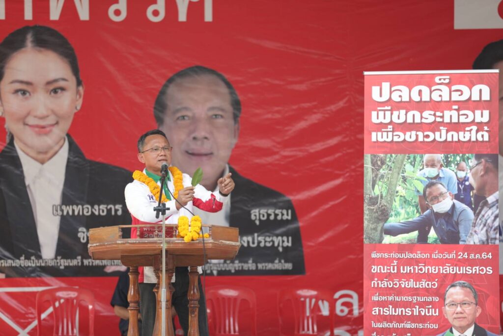 “สมศักดิ์”นำทีมเพื่อไทย ลุยหาเสียงเมืองตรัง ย้ำมาเพื่อแก้ปัญหาเศรษฐกิจ ทวงบุญคุณเป็นผู้ปลดล็อกพืชกระท่อม ผู้สมัคร ส.ส.มอบให้ เคี้ยวโชว์กลางเวที มั่นใจปักธงได้