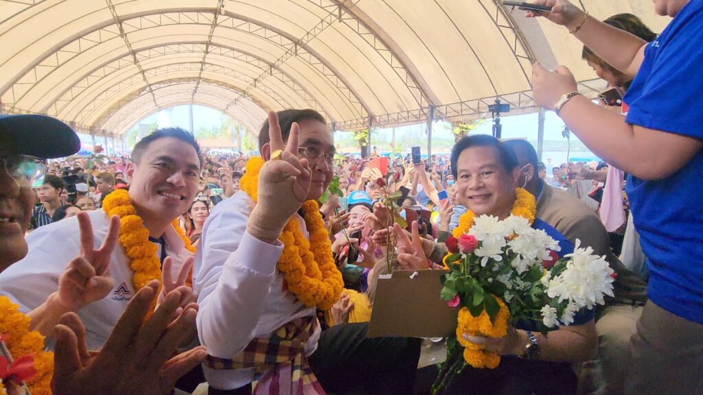 พล.อ.ประยุทธ์ จันทร์โอชา นายกรัฐมนตรีและรัฐมนตรีว่าการกระทรวงกลาโหม ในฐานะประธานยุทธศาสตร์ และแคนดิเดตนายกรัฐมนตรีของพรรครวมไทยสร้างชาติ พร้อมด้วยนายพีระพันธุ์ สาลีรัฐวิภาค หัวหน้าพรรคนายธนกร วังบุญคงชนะ รองหัวหน้าพรรค นายเอกณัฎ พร้อมพันธุ์ เลขาธิการพรรค ในฐานะกำกับดูแลพื้นที่ภาคใต้ ลงพื้นที่อำเภอกันตัง จังหวัดตรัง ช่วยนายสมบูรณ์ อุทัยเวียนกุล ผู้สมัครเขต 4 พรรครวมไทยสร้างชาติที่ย้ายมาจากประชาธิปัตย์