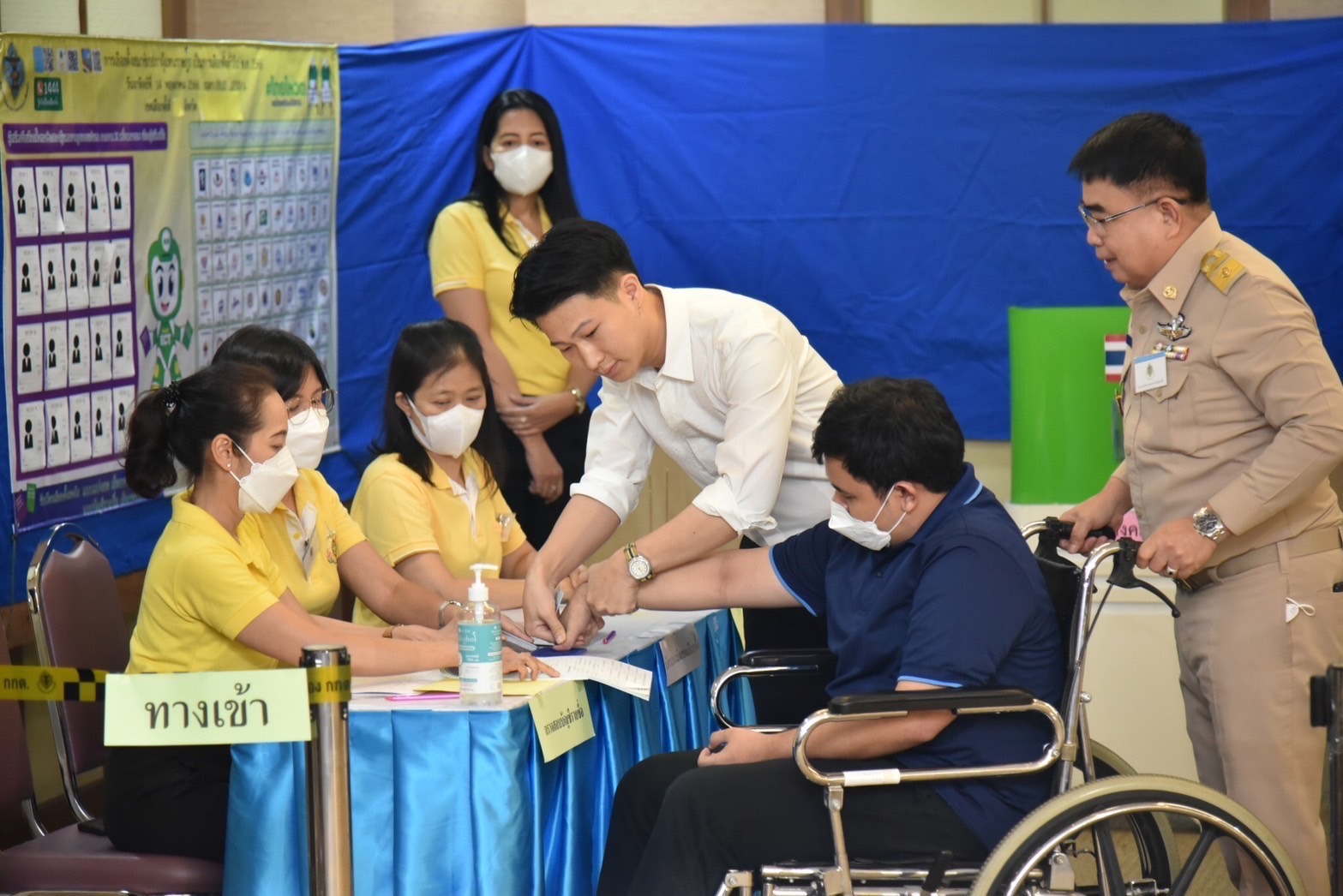 นอกจากคนปกติทั่วไป กกต. ยังสาธิตการอำนวยความสะดวกให้กับผู้พิการทางสายตาได้ใช้สิทธิเลือกตั้ง โดย ใช้เป็นบัตรทาบ และมีอักษรเบล ที่ตรงกับบัตรเลือกตั้งจริงทุกประการ ให้ผู้พิการทางสายตาสามารถสัมผัสได้อย่างถูกต้องและชัดเจน รวมถึงผู้พิการเดินไม่ได้หรือผู้สูงอายุก็จะมีรถเข็นวีลแชร์ และเจ้าหน้าที่คอยให้บริการพาเข้าไปในคูหาเลือกตั้งด้วย แต่ยืนยันว่าการลงคะแนนจะ เป็นความลับ เพราะผู้มีสิทธิเลือกตั้งจะต้องลงคะแนนด้วยตัวเองเว้นแต่จะขอความช่วยเหลือจากกรรมการประจำหน่วย ซึ่งคนพิการสามารถร้องขอให้ญาติลงคะแนนแทนได้ โดยยื่นคำร้อง 5/6 ส่วนคนที่ไม่มีแขนหรือมือทั้งสองข้าง ไม่สามารถพิมพ์ลายนิ้วมือได้ ก็ต้องลงคำร้อง 5/6 ด้วยเช่นกัน