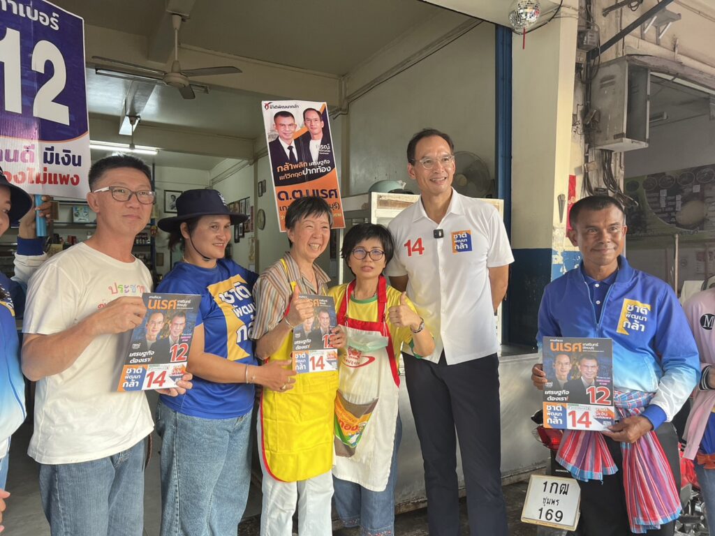 “ประชาชนตอบรับนโยบายเศรษฐกิจเพื่อปากท้องของเรา พวกเขาสะท้อนว่าอยากได้รัฐบาลที่มาจากการเลือกตั้งมาดูแลแก้ปัญหาให้กับเขา และค่อนข้างกังวลกับนโยบายประชานิยม โดยเฉพาะกลุ่มผู้เสียภาษี ที่กลัวว่าการจะนำเงินภาษีของเขามาใช้แบบนี้ มันเป็นวิธีการที่ถูกต้องหรือไม่ ซึ่งในส่วนของพรรคชาติพัฒนากล้า เราเน้นสร้างโอกาส เราไม่เน้นลดแลกแจกแถมหรือใช้งบประมาณด้านภาษีแต่อย่างใด การใช้เงินภาษีผมพูดเสมอว่าทำได้ ในยามวิกฤตแต่ในช่วงนี้ สิ่งที่ประชาชนต้องการ คือต่อยอดโอกาสในการทำมาค้าขายของเขา ถ้าเป็นเกษตรกร เขาก็อยากเห็นนโยบายที่ทำให้ ราคาพืชผลทางการเกษตรของเขาสูงขึ้น ทำให้เขามีชีวิตที่มั่นคงด้วยตัวเขาเองมากขึ้น” หัวหน้าพรรคชาติพัฒนากล้า กล่าว