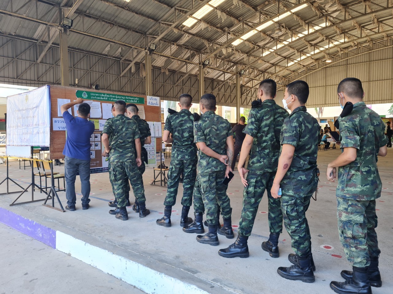 ทหารตบเท้าเข้าคิว ใช้สิทธิ์เลือกตั้งที่โคราชคึกคัก
