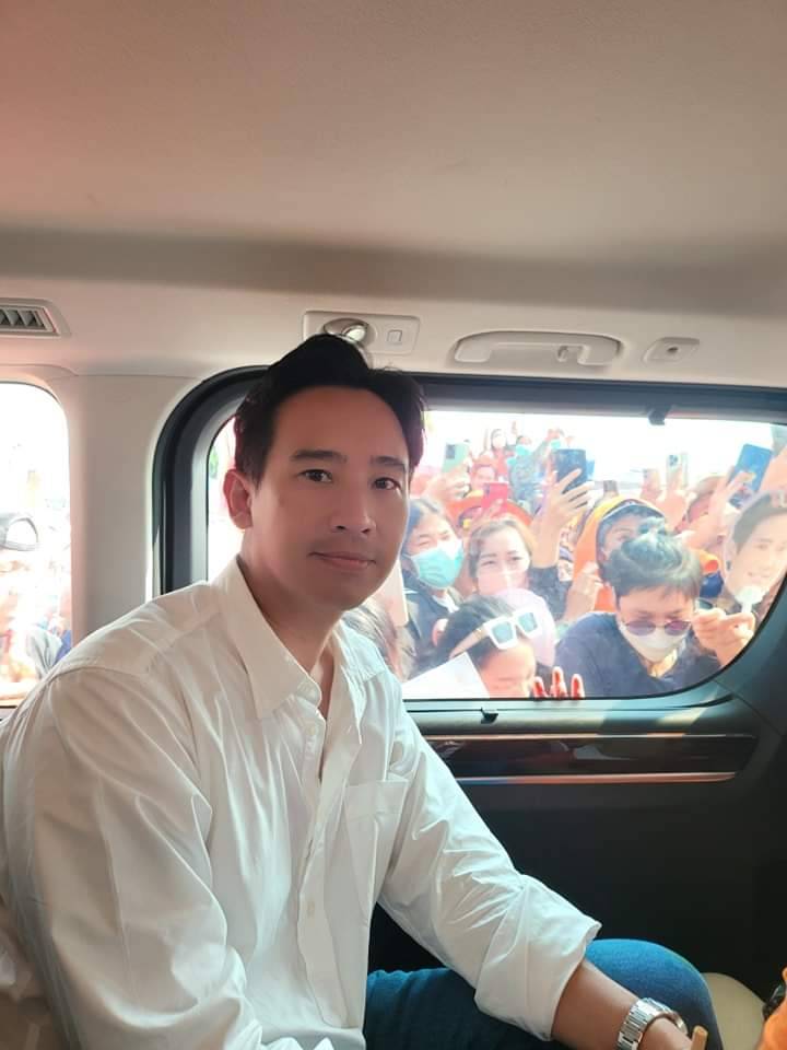 นายพิธา ลิ้มเจริญรัตน์ หัวหน้าพรรคก้าวไกล ว่าที่นายกฯ คนที่ 30 ของประเทศ ขึ้นรถแห่พร้อมกับว่าที่ ส.ส.ของพรรคก้าวไกล จ.ชลบุรี ได้แก่ นายสหัสวัต คุ้มคง ว่าที่ ส.ส.เขต 7 ชลบุรี นายยอดชาย พึ่งพร ว่าที่ ส.ส.ชลบุรี เขต 9 และ น้ำ น.ส.นิชนันท์ วังคะฮาต อดีตผู้สมัคร ส.ส.ชลบุรี เขต 10 ขอบคุณประชาชน ที่ลงคะแนนเสียงเลือกตั้งทำให้พรรคก้าวไกลชนะถึง 7 เขต จาก 10 เขต