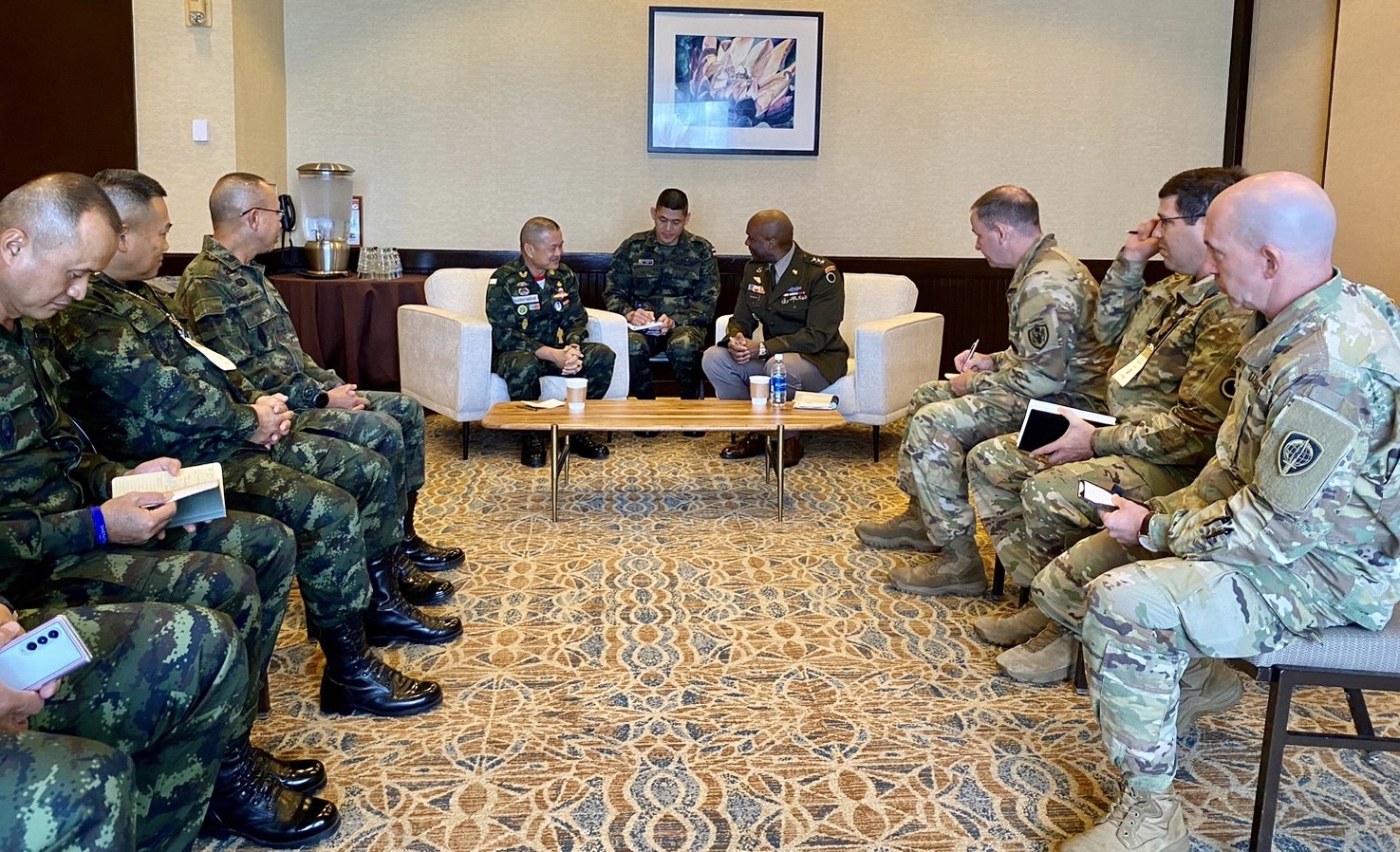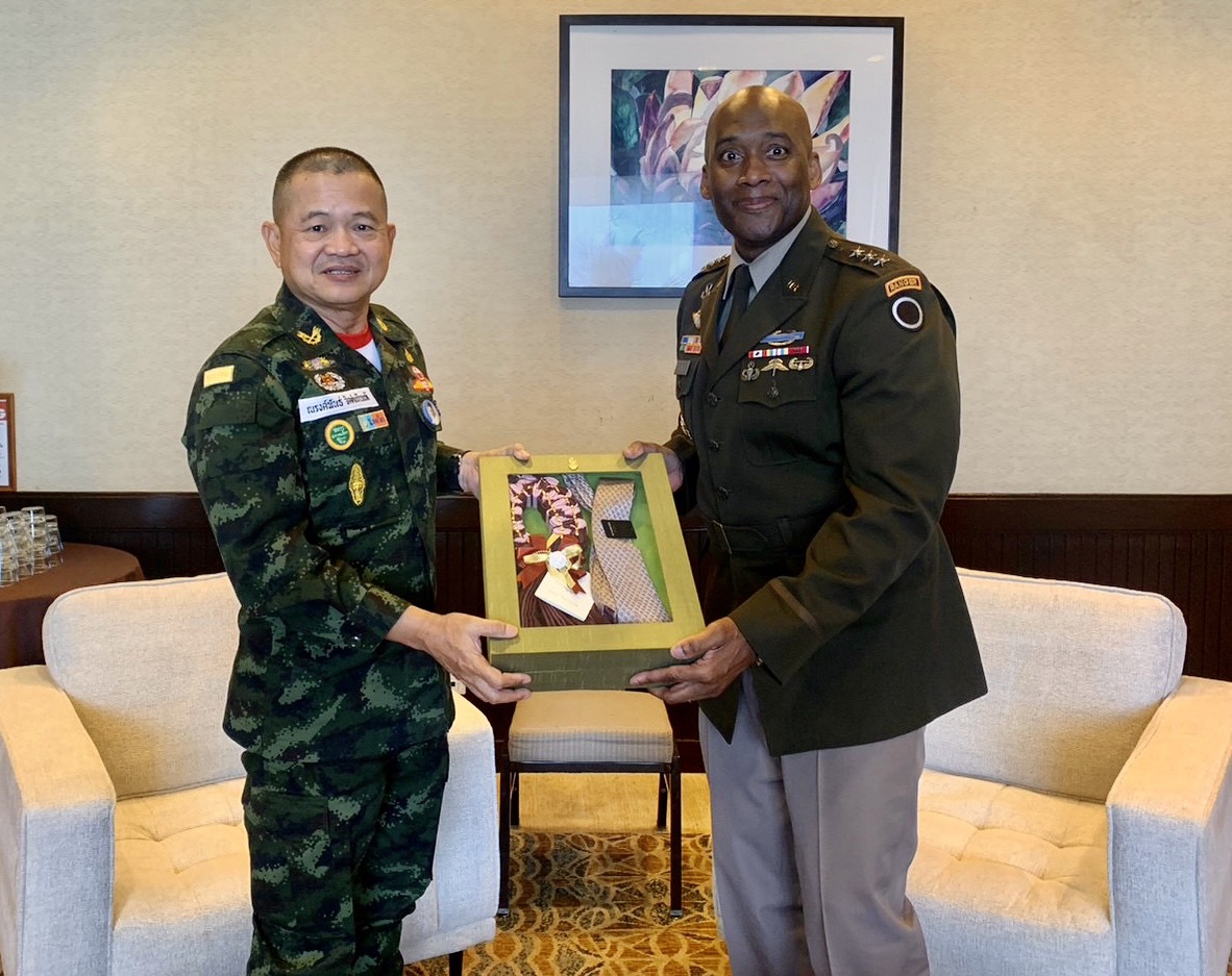 ได้พบปะหารือกับ พลเอก ชาร์ลส เอ ฟลินน์ (Charles A. Flynn) ผู้บัญชาการกองกำลังทางบกสหรัฐฯภาคพื้นแปซิฟิก (USARPAC) เพื่อสานต่อความร่วมมือหลังจากที่ได้เข้าเยี่ยมคำนับผู้บัญชาการทหารบก ณ กองบัญชาการกองทัพบก เมื่อวันที่ 18 เมษายน 2566 นอกจากนี้ ผู้บัญชาการทหารบก ได้มีโอกาสหารือทวิภาคีกับผู้นำทางทหารมิตรประเทศ อาทิ ผู้บัญชาการกองกำลังป้องกันตนเองญี่ปุ่น, ผู้อำนวยการสำนักวิเทศสัมพันธ์กองทัพบกฝรั่งเศส, รองผู้บัญชาการกองทหารเกียรติยศ ประจำกองบัญชาการสหประชาชาติ (UNC), ผู้บัญชาการทหารบกบังคลาเทศ และผู้บัญชาการทหารบกออสเตรเลีย เพื่อความร่วมมือด้านการฝึกศึกษา การฝึกร่วม/ผสม และการแลกเปลี่ยนการเยือนระหว่างกัน