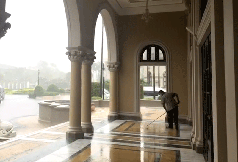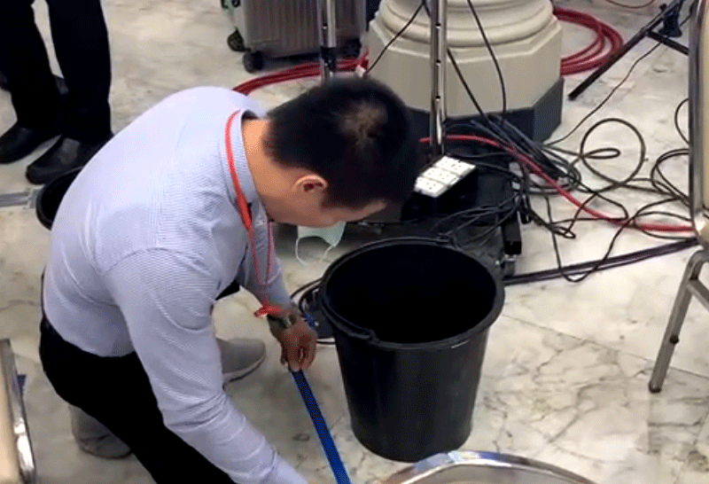 ผู้สื่อข่าวรายงานว่า ภายหลังการประชุมคณะรัฐมนตรี ก่อนนายกรัฐมนตรีให้สัมภาษณ์สื่อมวลชน มีพายุฝน ตกลงมาอย่างหนัก จนทำให้เกิดน้ำรั่วลงมาภายในห้องโถง ตึกสันติไมตรี ซึ่งเป็นจุด ตั้งโพเดียมแถลงข่าว เจ้าหน้าที่จึงนำถังมารอมารอง ทั้งนี้ ได้ที่ผ่านมาได้มีการซ่อมแซมหลังคาตึกสันติไมตรีแล้วหลายครั้ง แต่ยังไม่สามารถแก้ไขปัญหาน้ำรั่วได้