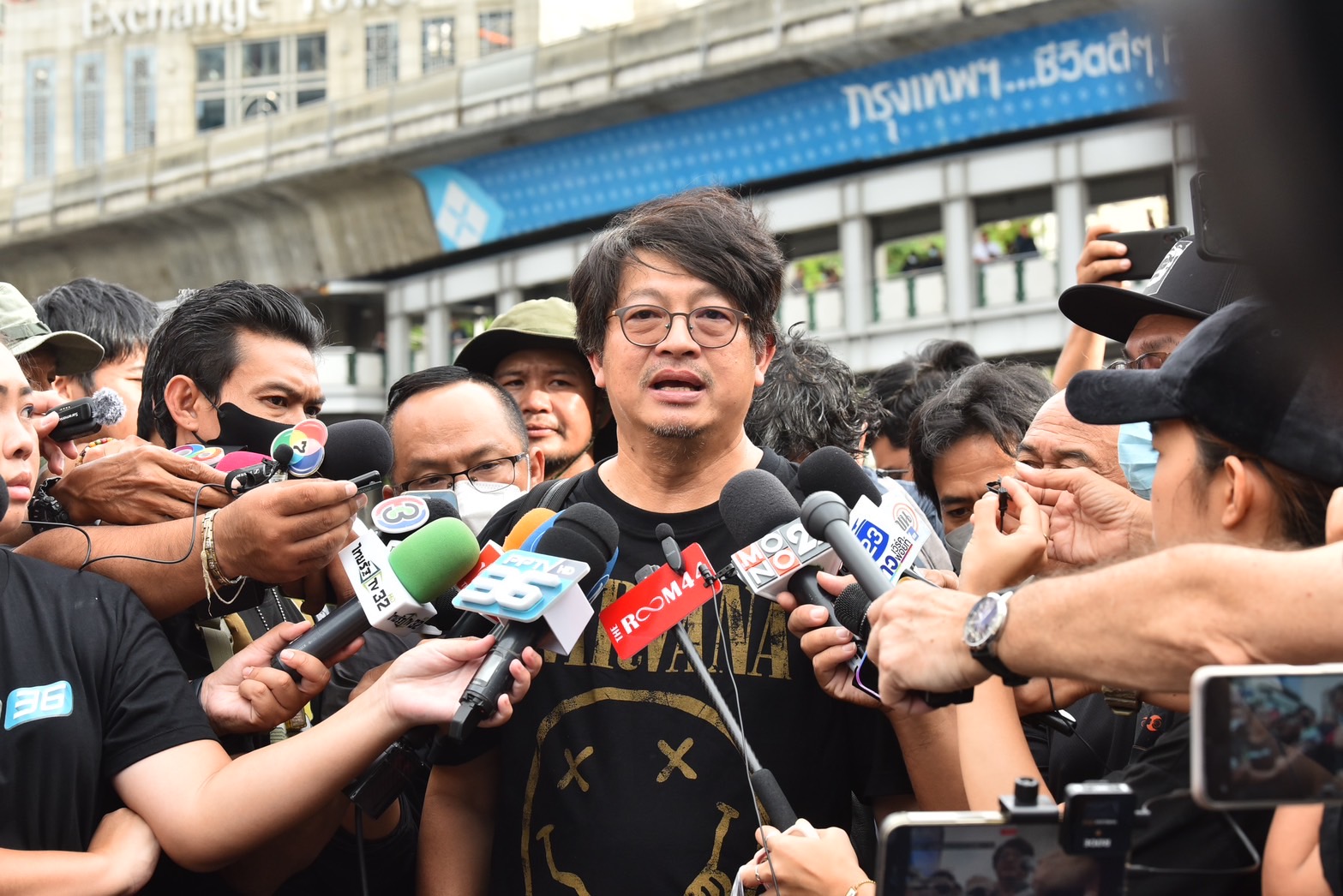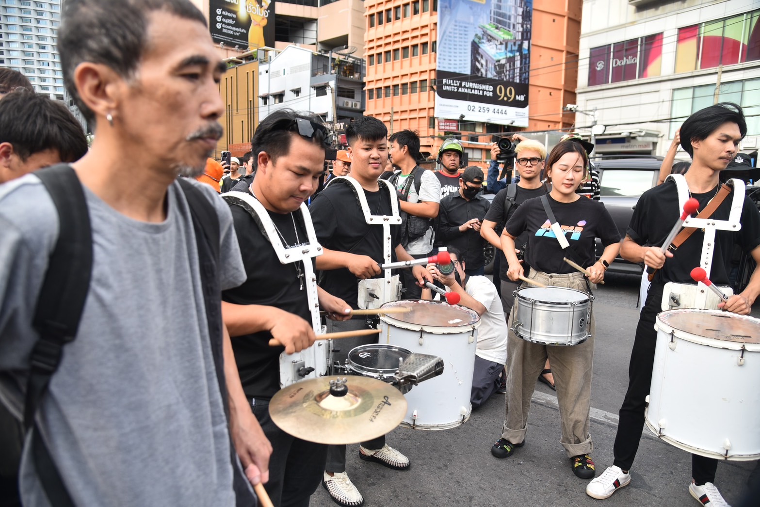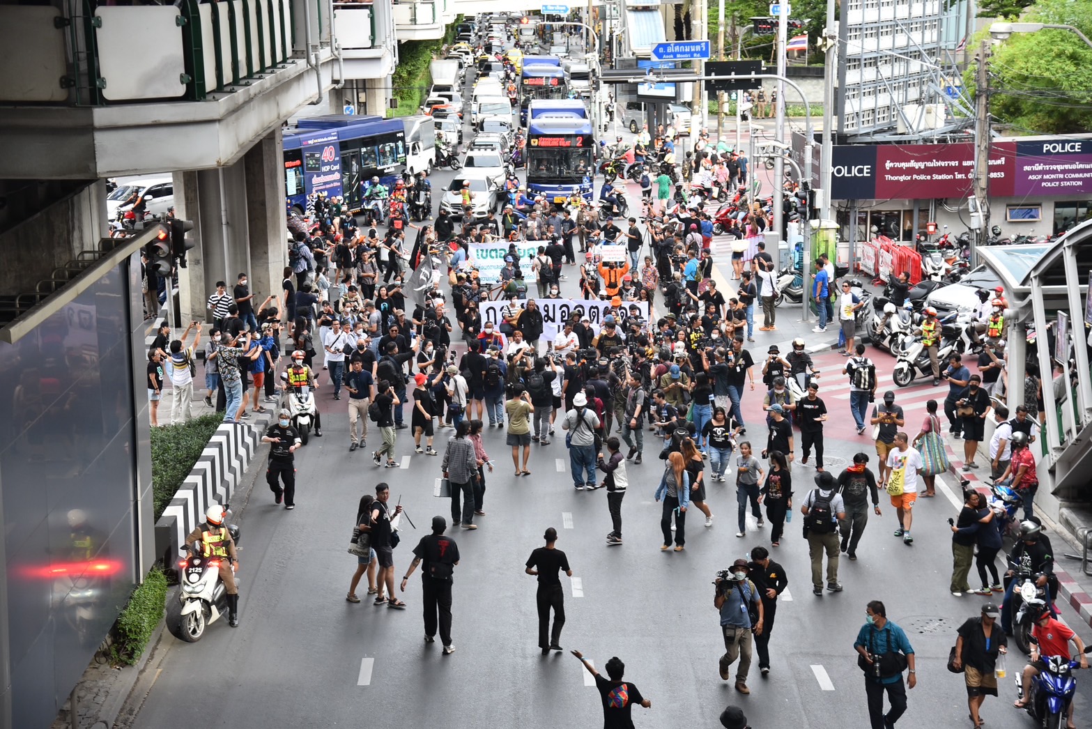 และต้องมุ่งเน้นหลักการทางประชาธิปไตย หลังจากพูดคุยกับสื่อมวลชนเสร็จ ทางบก.ลายจุดก็ได้มีการนำรูปของตัวเองวางลงที่พื้น และให้เหล่ามวลชนเหยียบไปที่รูปขิงตนเองเพื่อเป็นการขอโทษ นพ.ชลน่านตามที่กล่าวไปข้างต้น จากนั้นจึงเริ่มพาเหล่ามวลชนเคลื่อนขบวนไปยัง สี่แยกราชประสงค์ โดยการเดินเท้า และมีการใช้รถจักรยานยนต์ รถยนต์ ในการเคลื่อนขบวนครั้งนี้อีกด้วย โดยตลอดระยะเวลาของการร่วมตัวตั้งขบวน จนถึงการเคลื่อนขบวน เป็นไปด้วยความเรียบร้อยไม่มีติดขัดอะไร ทางเจ้าหน้าที่ตำรวจ และเจ้าหน้าที่กู้ภัย ก็ได้มีการคอยอำนวยความสะดวกทางจราจรให้อีกด้วยเช่นกัน