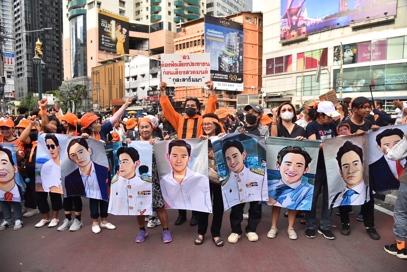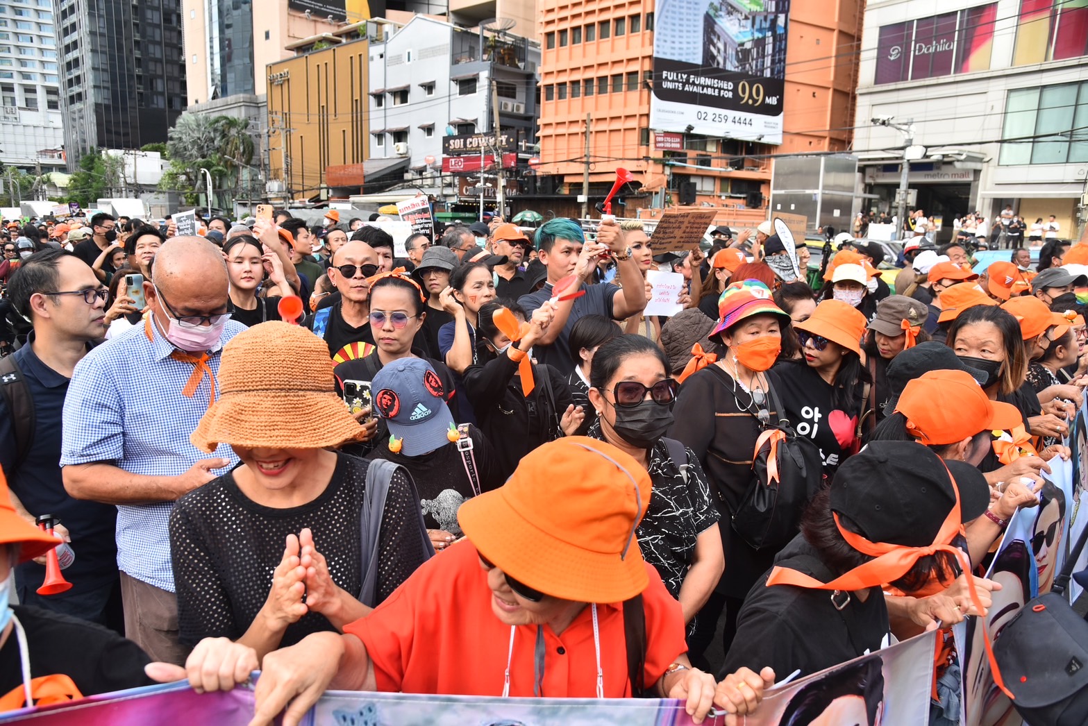 วันนี้ (29 ก.ค. 66) เวลา 16.00 น. ที่บริเวณแยกอโศกมนตรี กลุ่มมวลชนผู้สนับสนุนพรรคก้าวไกล นำโดย นายสมบัติ บุญงามอนงค์ (บก.ลายจุด) นัดรวมตัวกันเพื่อจัดกิจกรรมเชิงสัญลักษณ์ โดยการเดินขบวนพร้อมรองเท้าผ้าใบ ร่วมแปรอักษรปริศนา ที่จะมอบให้ สว. ได้คิดต่อ คิดเยอะ ๆ คิดนาน ๆ ก่อนจะเคลื่อนขบวนไปแยกราชประสงค์ ในเวลา 17.00 น.