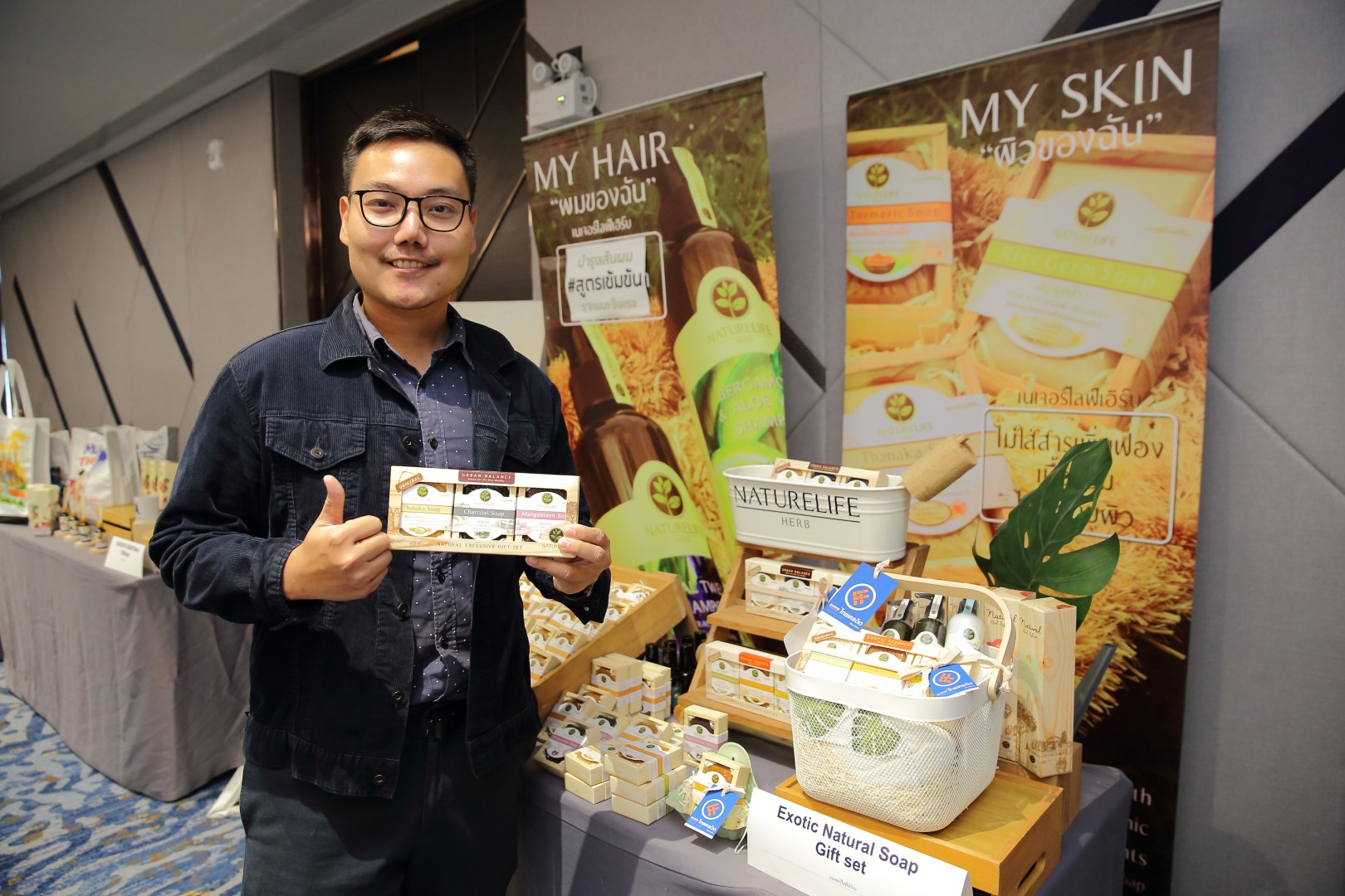ผู้ชนะเลิศระดับชุมชน โรฒวศิน รัตนะเสาวคนธ์ บจก. เนเจอร์ไลฟ์เฮิร์บ จ.ปราจีนบุรี ผลิตภัณฑ์ “กิฟต์เซ็ตสบู่หอมจากธรรมชาติ” “รู้สึกดีใจและภูมิใจที่ผลิตภัณฑ์จากชุมชนของเราได้รับรางวัลชนะเลิศ และคัดเลือกเป็นของที่ระลึกของธนาคารฯ ขอขอบคุณธนาคารฯ ที่มีส่วนช่วยผลักดันให้ผลิตภัณฑ์ชุมชนจากภูมิปัญญาท้องถิ่นเป็นที่รู้จักมากขึ้น ซึ่งช่วยสร้างโอกาสทางธุรกิจให้กับผู้ประกอบการ สร้างอาชีพ เพิ่มรายได้ให้แก่คนในชุมชน”