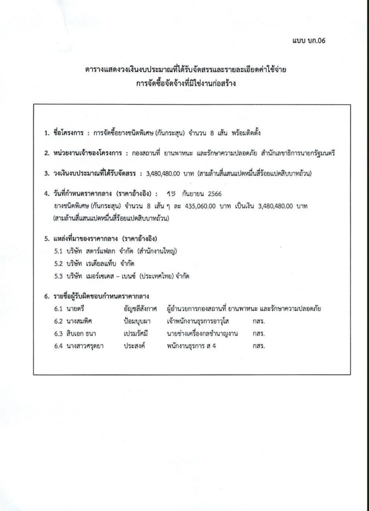 รายงานข่าวจากทำเนียบรัฐบาล ถึงกรณีการจัดซื้อจัดจ้างยางรถยนต์กันกระสุนของกองสถานที่ยานพาหนะ และรักษาความปลอดภัยสำนักเลขาธิการนายกรัฐมนตรี ที่มีการเผยแพร่เอกสารจัดซื้อจัดจ้าง กำหนดราคากลางการจัดซื้อยางบางชนิดพิเศษ(กันกระสุน)จำนวน 8 เส้น งบประมาณ 3,480,480 บาท เส้นละ 435,060 บาท โดยราคาอ้างอิงลงวันที่ 15 กันยายน 2566 อ้างอิงแหล่งที่มาราคากลางจาก 3 บริษัท.ผ่านเว็บไซต์ thaigov.go.th.