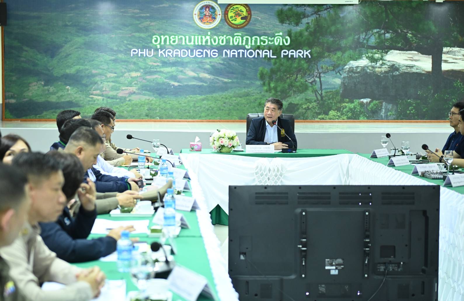 อุทยานแห่งชาติภูกระดึงสามารถแก้ไขปัญหา เพื่อทำให้ความเห็นทั้งหมดรวมกันได้ เป็นธงสำคัญที่เราคุยกับทุกฝ่าย แต่ขณะเดียวกันเราก็ให้ฝ่ายที่ศึกษาในการสร้างกระเช้าขึ้นศึกษาหนทางที่กระทบกับปัญหาสิ่งแวดล้อมและข้อกังวลใจของคนต่างๆให้น้อยที่สุด ตนได้ให้ความมั่นใจว่าจะให้งบที่ ครม. อนุมัติแล้วสามารถดำเนินการได้โดยเร็วที่สุด ขณะเดียวกันให้หน่วยราชการที่เกี่ยวข้องไปคิดแผนดำเนินการท่องเที่ยวต้องรักษาระบบนิเวศ แก้ไขปัญหาความไม่สบายใจของหลายส่วน จัดระบบการท่องเที่ยวอย่างไรให้ปลอดภัยให้ไม่มีขยะ หรือกระทบสิ่งแวดล้อมที่มากเกินไป ปัญหาทั้งหมดอยู่ที่การจัดการ จะทำให้การท่องเที่ยวและสิ่งแวดล้อมไปคู่กันได้ เราจะนำมาปรับ
