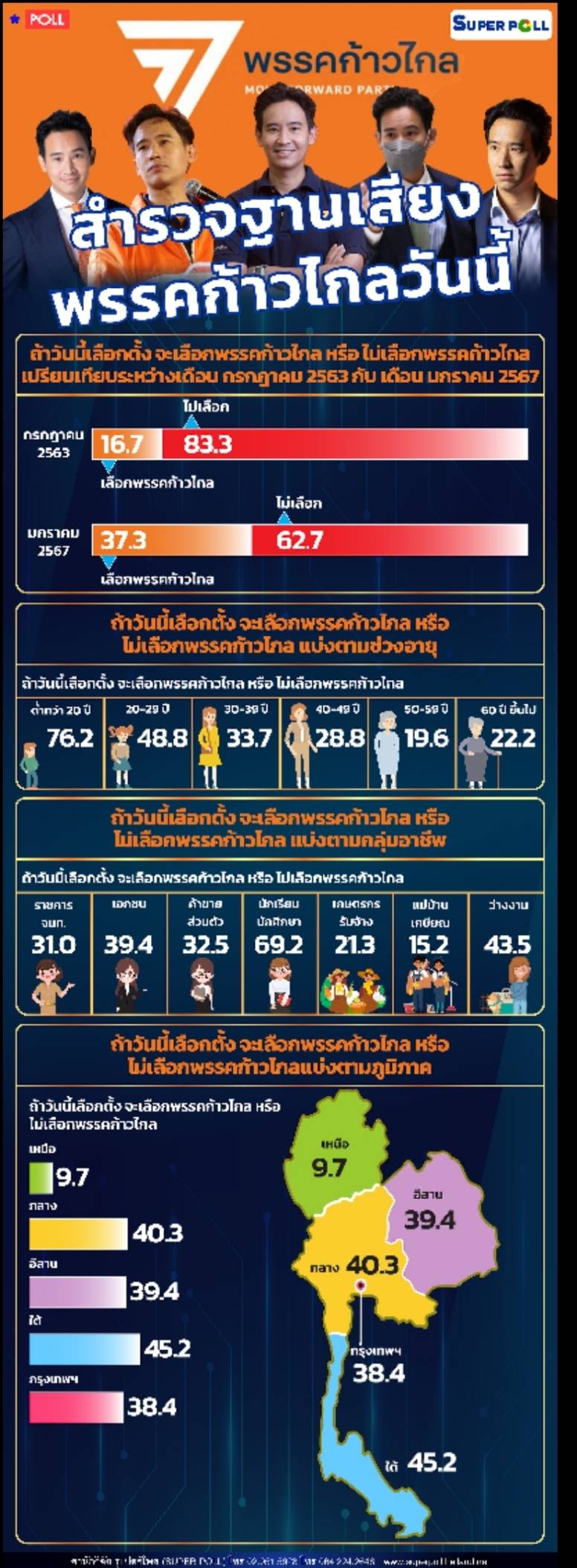 SUPER โพล เผยคนนิยมเลือกพรรคก้าวไกลพุงสูงขึ้น