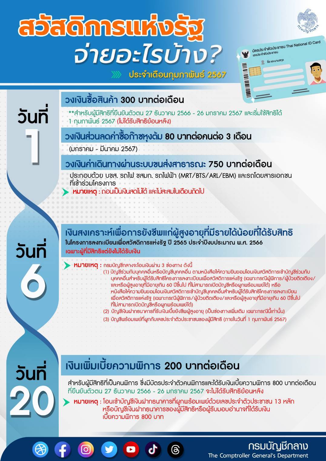 กรมบัญชีกลางอัพเดตสวัสดิการแห่งรัฐก.พ.67จ่ายอะไรบ้าง