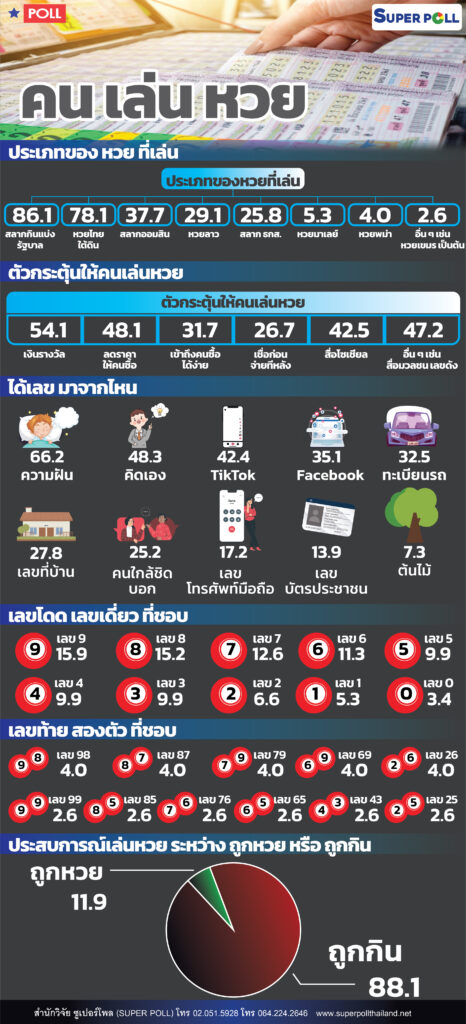 ซูเปอร์โพล ปชช.86.1%ซื้อหวยรัฐบาล78.1%เล่นใต้ดิน