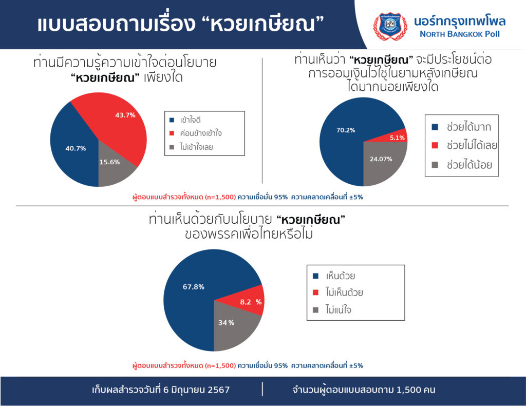 เปิดผลโพล คนไทย ชื่นชอบนโยบาย “หวยเกษียณ” ของพรรคเพื่อไทย เห็นด้วยมีประโยชน์ต่อการออมเงิน