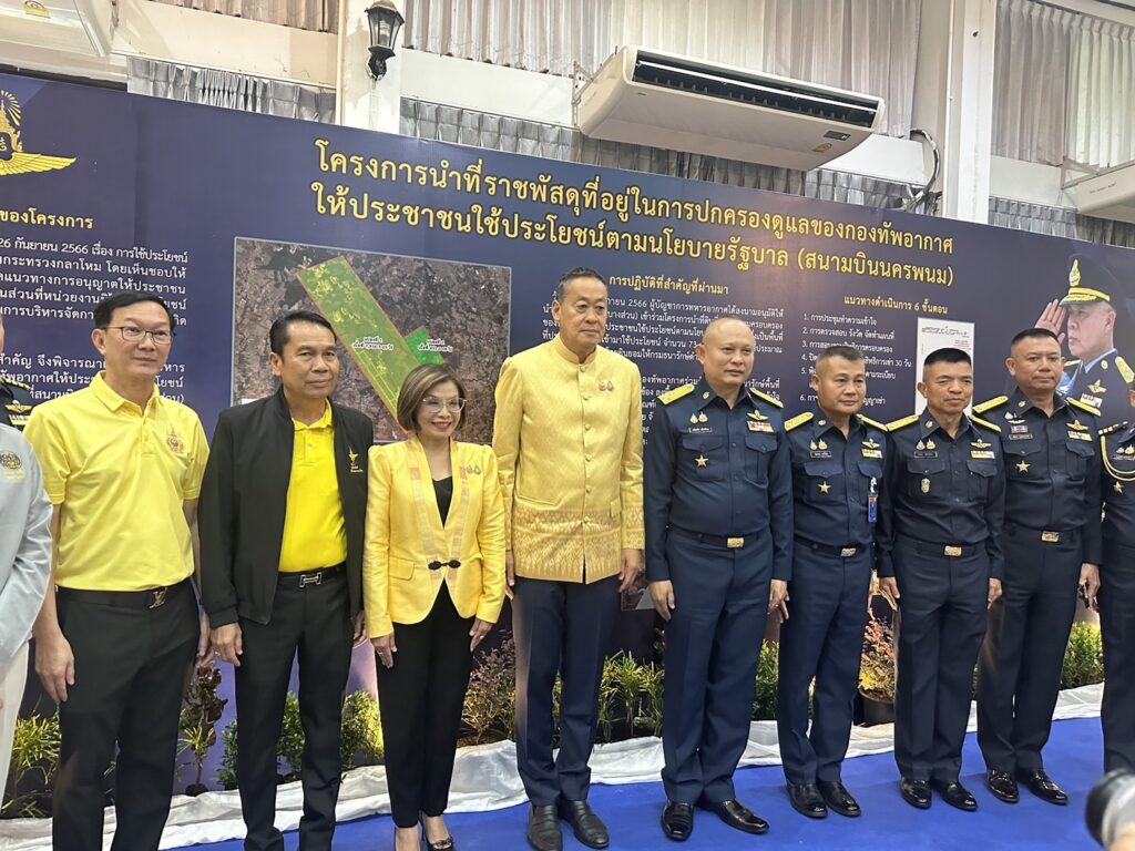ขอขอบคุณกองทัพทุกกองทัพ ซึ่งวันนี้มาในนามของกองทัพอากาศ หากจำได้ก่อนหน้านี้เรามีการ Kick Off โครงการนี้ที่หนองวัวซอ โดยกองทัพบก และต้องขอบคุณกรมธนารักษ์ที่ช่วยผลักดันเรื่องเหล่านี้ให้เกิดขึ้นได้ ซึ่งเป็นเรื่องดี เรื่องที่ดินทำกินถือเป็นเรื่องสำคัญมาก ทางกองทัพเองไม่ใช่จะทำงานร่วมกับกรมธนารักษ์ในการจัดหาที่ดินอย่างเดียว แต่เรื่องระบบชลประทานที่พี่น้องมีความต้องการ ทุกกองทัพจะเข้าไปดำเนินการหลังจากได้เช่าที่ดินดังกล่าวเป็นที่เรียบร้อยแล้ว สอดคล้องกับนโยบายรัฐบาล ที่พยายามขยายตลาดสินค้าการเกษตรส่งผลราคาพืชผลดีขึ้น แต่ถ้าไม่มีที่ดินทำกิน แม้พืชผลดี ราคาตลาดดี แต่ไม่สามารถปลูกพืชได้ โดยเฉพาะอย่างยิ่ง 72,000 ไร่ในโครงการพระราชดำริถือเป็นที่ดินที่มีคุณค่าอย่างยิ่งขอบคุณทุกภาคส่วนที่ได้มีส่วนร่วมในการทำให้พวกท่านมีที่ดินทำกิน อยู่อย่างมีศักดิ์ศรี มีรายได้ที่สมบูรณ์แบบ จากนั้นนายกรัฐมนตรีถ่ายภาพร่วมกับผู้เช่าที่ราชพัสดุ