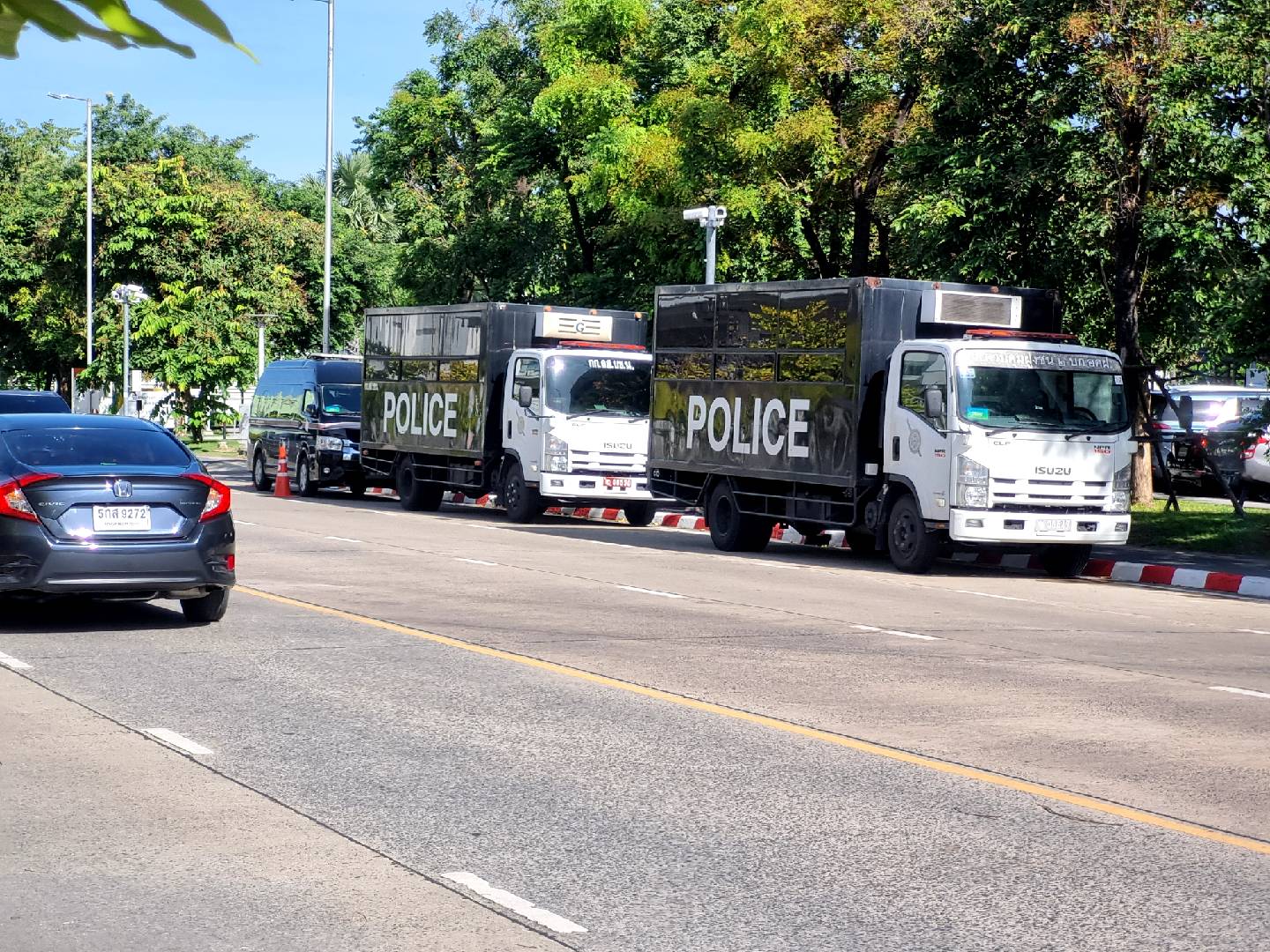ควบคุมฝูงชนจากกองบังคับการตำรวจนครบาล 2 จำนวน 1 กองร้อย และเจ้าหน้าที่ตำรวจสน.ทุ่งสองห้อง ทั้งในและนอกเครื่องแบบ คอยดูแลความปลอดภัยบริเวณโดยรอบศาล รัฐธรรมนูญ รวมถึงมีการจัดเตรียมรถฉีดน้ำความดันสูงจีโน่ บริเวณประตู 6 เตรียมสำหรับกรณีเกิดเหตุฉุกเฉิน