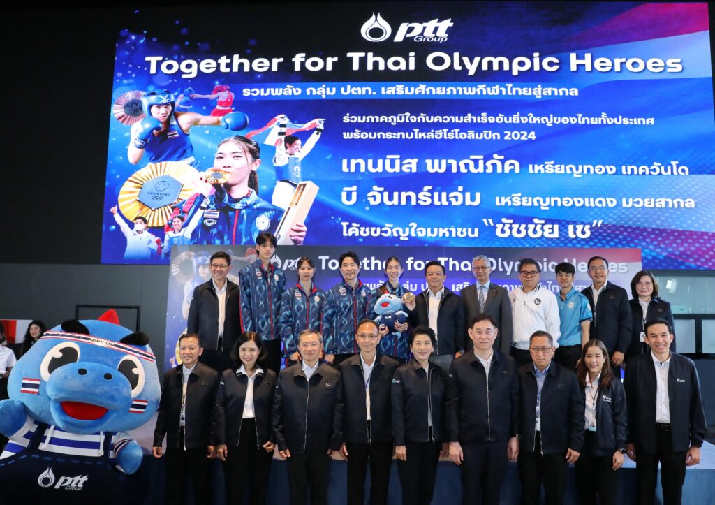 นายคงกระพัน อินทรแจ้ง ประธานเจ้าหน้าที่บริหารและกรรมการผู้จัดการใหญ่ บริษัท ปตท. จำกัด (มหาชน) (ปตท.) พร้อมด้วยคณะผู้บริหารระดับสูงและพนักงานกลุ่ม ปตท. จัดกิจกรรม “Together for Thai Olympic Heroes” แสดงความยินดีกับความสำเร็จและขอบคุณทัพนักกีฬาไทยที่สร้างความสุข ความภาคภูมิใจให้คนไทย ในการแข่งขันโอลิมปิกครั้งที่ 33 ณ กรุงปารีส สาธารณรัฐฝรั่งเศส พร้อมมอบเงินสนับสนุนคณะนักกีฬา ผู้ฝึกสอน สมาคมกีฬาเทควันโดแห่งประเทศไทย และสมาคมกีฬามวยสากลแห่งประเทศไทย ซึ่งเป็นส่วนหนึ่งของสมาคมกีฬาที่ ปตท. ร่วมสนับสนุน รวมมูลค่า เงินรางวัลกว่า 4,500,000 บาท ณ อาคาร ปตท. สำนักงานใหญ่ ถนนวิภาวดีรังสิต กรุงเทพฯ