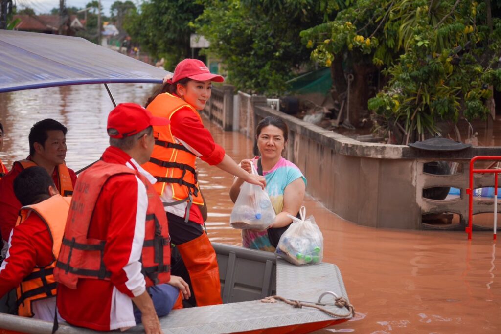 น.ส.แพทองธาร ชินวัตร นายกรัฐมนตรี ในฐานะหัวหน้าพรรคเพื่อไทย ได้เดินทางต่อมายังชุมชนบ้านภูมินทร์- ท่าลี่ และได้ลงเรือ พร้อมกับนายสรวงศ์ เทียนทอง เลขาธิการพรรค และ สส.น่าน พรรคเพื่อไทย เพื่อเข้าไปมอบอาหารและถุงยังชีพ ให้แก่ประชาชนที่อยู่ในพื้นที่น้ำท่วมสูง จนการไฟฟ้าส่วนภูมิภาคต้องตัดกระแสไฟ โดยชาวบ้านต่างยินดีที่ได้พบ น.ส.แพทองธาร และขอบคุณที่ได้เดินทางมาเยี่ยมถึงพื้นที่