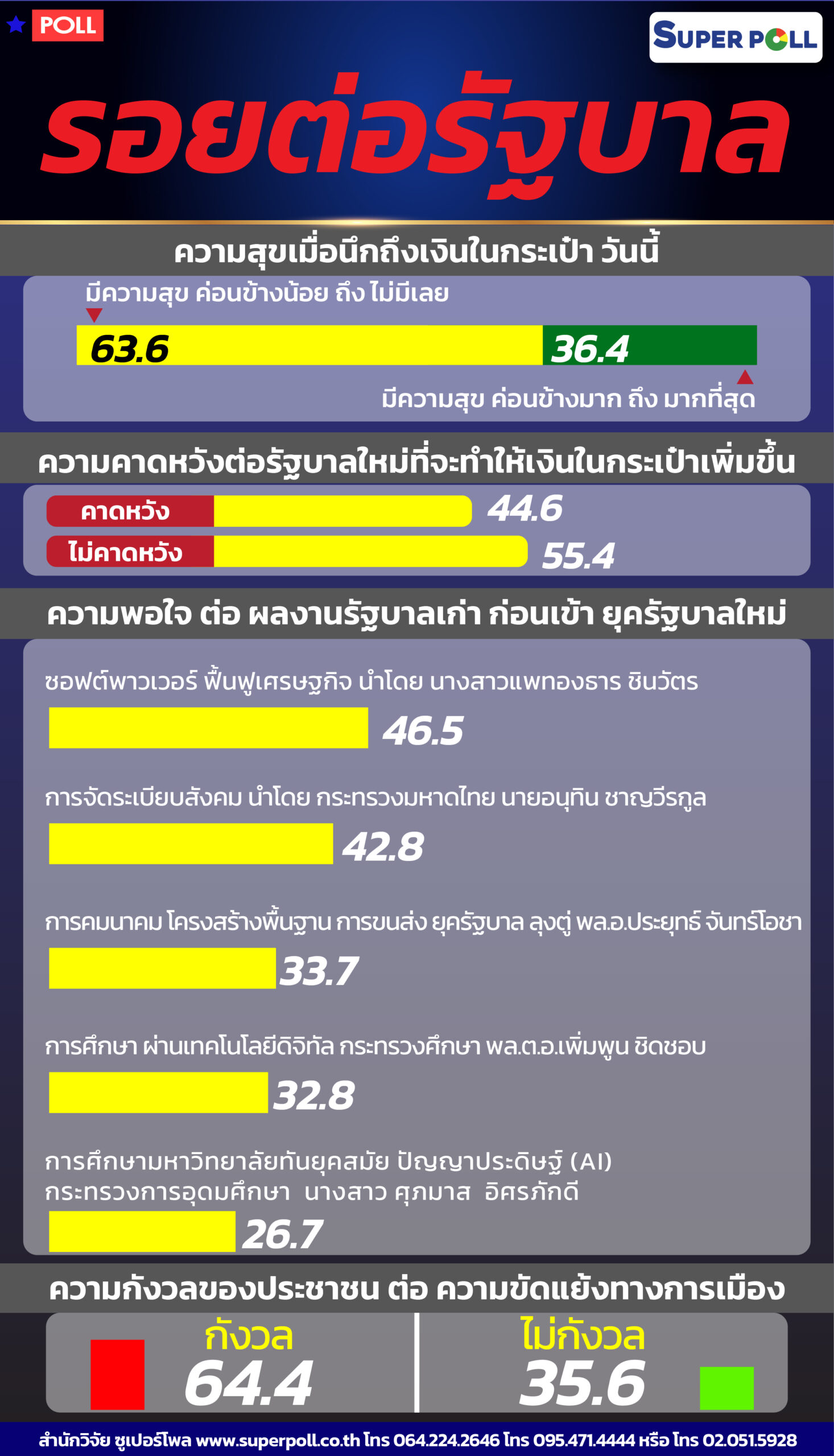 ซูเปอร์โพล หวังรัฐบาลใหม่ทำเงินในกระเป๋าเพิ่ม ห่วงขัดแย้งการเมือง