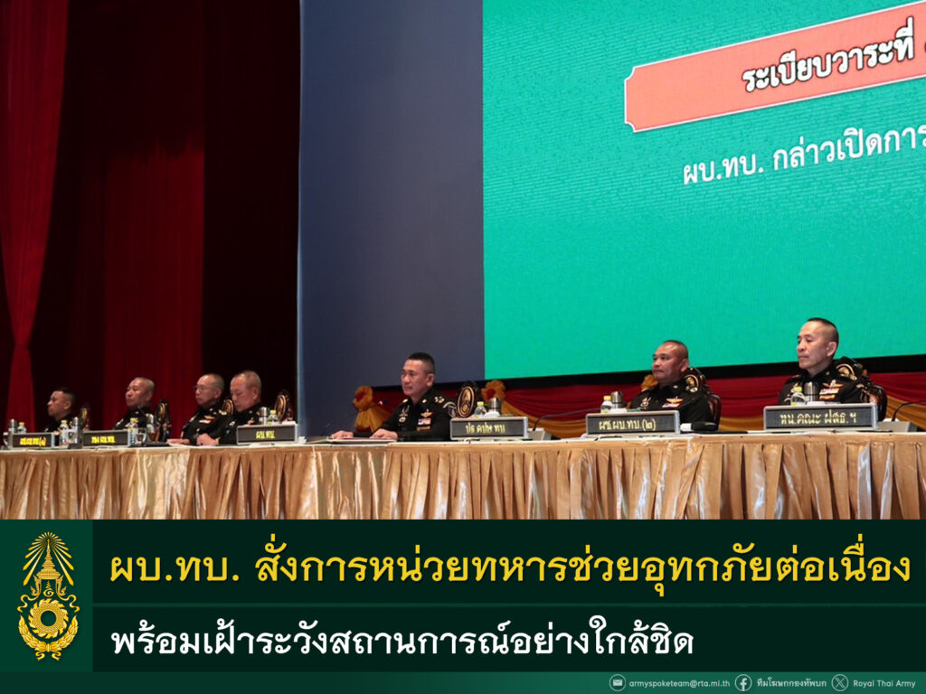 ผบ.ทบ. สั่งการหน่วยทหารเข้าช่วยเหลืออุทกภัยอย่างต่อเนื่อง พร้อมเฝ้าระวังสถานการณ์อย่างใกล้ชิด