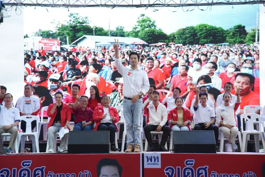 การปราศรัยใหญ่ของพรรคเพื่อไทย เพื่อขอคะแนนให้ “บู้ นายจเด็ศ จันทรา ผู้สมัคร สส.เขต 1 พิษณุโลก เบอร์ 2 ที่ หจก.ดำรงค์พืชผล พิษณุโลก โดยมีประชาชนมาร่วมเป็นจำนวนมาก ทำให้บรรยากาศเป็นไปอย่างคึกคัก ซึ่งพรรคเพื่อไทยได้ส่งแกนนำมาขึ้นเวทีปราศรัยและให้กำลังใจผู้สมัครอย่างคับคั่ง อาทิ นายเสริมศักดิ์ พงษ์พานิช อดีตรัฐมนตรีว่าการกระทรวงการท่องเที่ยวและกีฬา นายอนุสรณ์ เอี่ยมสะอาด สส.บัญชีรายชื่อพรรค นายดนุพร ปุณณกันต์ สส.บัญชีรายชื่อและโฆษกพรรค