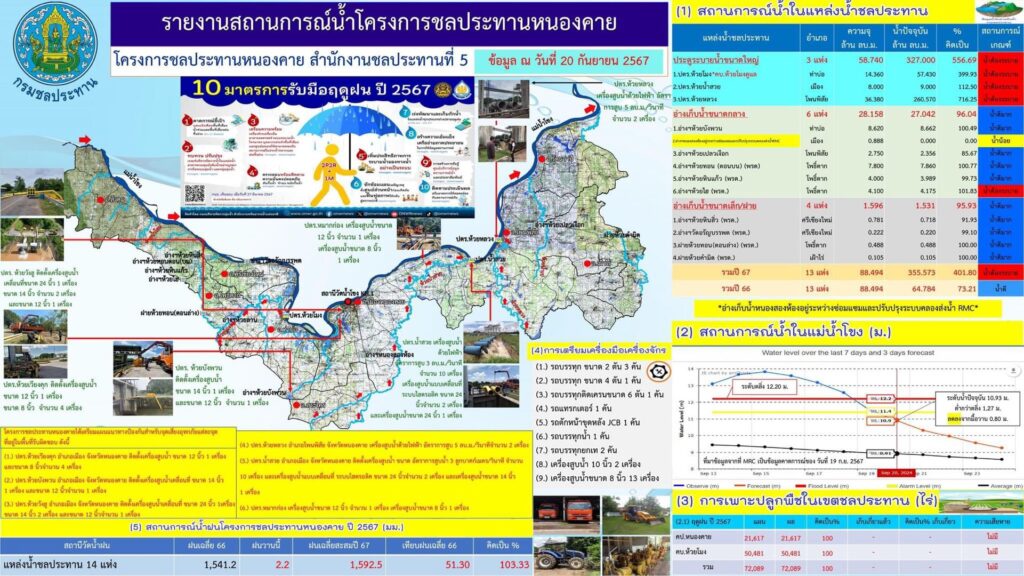 ปริมาณน้ำฝน 9.4 มม. และแม้ว่า แม่น้ำโขงที่หนองคาย เริ่มลดลง แต่ยังต้องเร่งระบายน้ำท่วมขัง พร้อมเฝ้าระวังที่นครพนมด้วย อีกทั้งต้อง