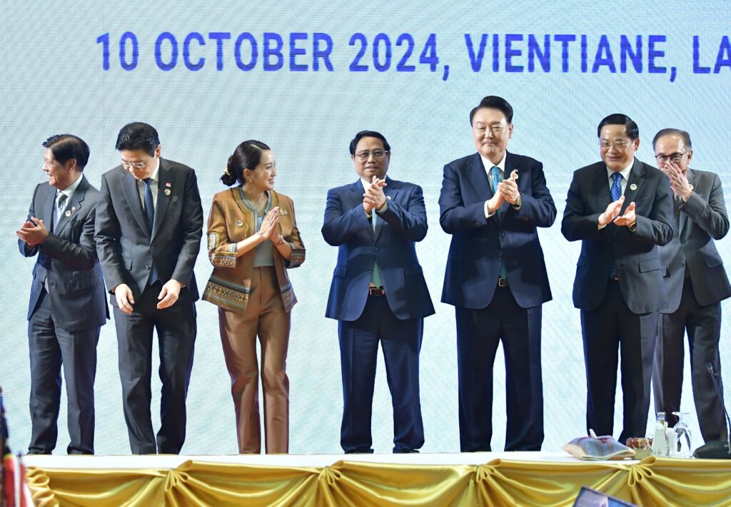 น.ส.แพทองธาร ชินวัตร นายกรัฐมนตรี ร่วมการประชุมสุดยอดอาเซียน ระหว่างผู้นำอาเซียนกับเกาหลีใต้ ครั้งที่ 25 โดยในการประชุมครั้งนี้นายยุน ซ็อก ย็อล ประธานาธิบดี สาธารณรัฐเกาหลีร่วมการประชุม โดยน.ส.แพทองธาร ได้กล่าวถ้อยแถลงในนามอาเซียน (ASEAN Common Statement) เนื่องจากประเทศไทย เป็นประเทศผู้ประสาน Coordinator และกล่าวในนามประเทศไทย โดยระบุว่า ปีนี้ถือเป็นปีสําคัญในการเฉลิมฉลองครบรอบ 35 ปีของความสัมพันธ์อาเซียน-เกาหลีใต้ ซึ่งตลอดเวลาที่ผ่านมา อาเซียนกับเกาหลีใต้มีความร่วมมือ ที่ลึกซึ้งและขยายขอบเขตไปได้ทั้ง 3 เสาหลักของประชาคมอาเซียน และวันนี้ถือเป็นการเริ่มต้น บทบาทใหม่ของความสัมพันธ์ด้วยการจัดตั้งหุ้นส่วนเชิงยุทธศาสตร์รอบด้าน หรือ CPS ซึ่งหวังว่าจะได้ดําเนินการ CPS บนพื้นฐานของความไว้วางใจ เคารพซึ่งกันและกัน และเพื่อผลประโยชน์ร่วมกัน และการพัฒนาแผนปฏิบัติการอาเซียน-เกาหลีใต้ฉบับใหม่ (พ.ศ. 2569-2573) จะเป็นแนวทางความร่วมมือในอนาคต