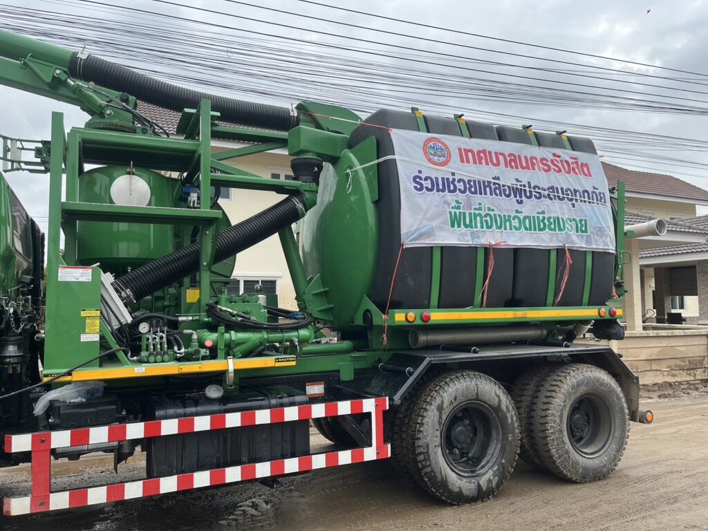 โดยทำงานร่วมกับรถดูดโคลนจากหน่วยงานราชการอื่นๆ และมูลนิธิต่างๆ อย่างเต็มที่, ขอความร่วมมือ กทม.โดยนายชัชชาติ สิทธิพันธุ์ ผู้ว่าราชการกรุงเทพมหานคร ขอให้รถดูดโคลน 4 คัน และรถน้ำ 4 คัน ที่ทาง กทม. ส่งมาช่วยเหลือก่อนหน้านี้จากกำหนดการเดิม จะกลับในวันที่ 12 ต.ค.ให้อยู่ในพื้นที่ต่อพร้อมจัดหาคนขับรถเพิ่มเติม, ประสาน กระทรวงอุตสาหกรรม