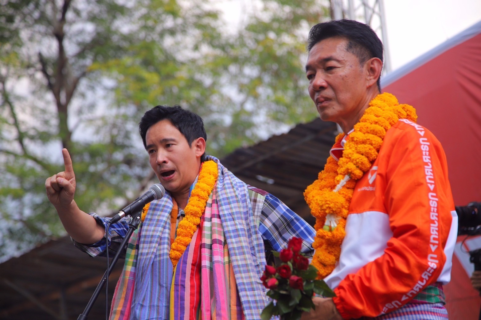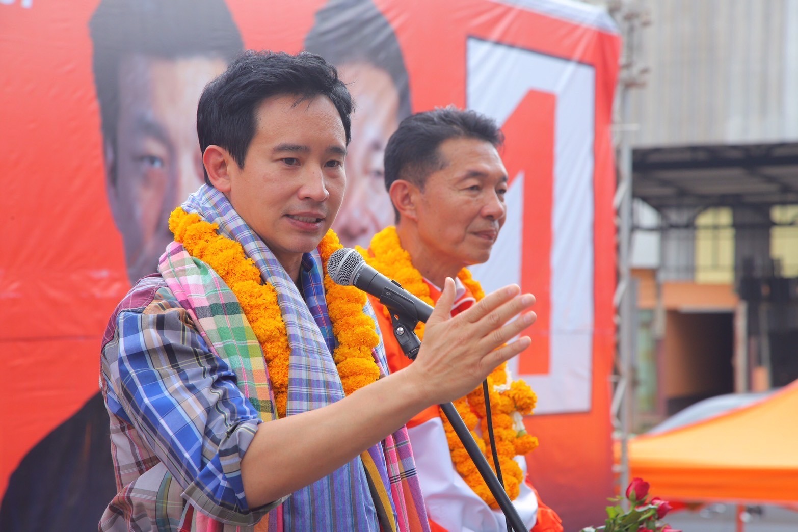 นายพิธา ยังกล่าวว่าที่ผ่านมาทักษิณ ชินวัตร และพรรคเพื่อไทย หาเสียงเหมือนตัวเองเป็นฝ่ายค้าน อบจ. คนเก่าเป็นมา 12 ปีเพิ่งมาบอกว่าจะทำน้ำประปาสะอาด แปลว่า 12 ปีที่ผ่านมาไม่สะอาดใช่หรือไม่บอกว่าจะจัดการปัญหายาเสพติด แต่ทุกวันนี้ก็ยังมีปัญหาเจ้าพ่อยาเสพติด ทุนจีนสีเทา เมื่อปีก่อนหน้านี้ก็มีเรื่องตั๋วตำรวจเพื่อไทย ตราบใดที่ยังมียาเสพติดจากต่างประเทศแล้วยังมีตั๋วตำรวจ ยาเสพติดก็แก้ไม่ได้ เป็นรัฐบาลมา 14 เดือนราคายาบ้ายังเหมือนเดิม ตั๋วตำรวจยังมีหรือไม่ ขอให้ตอบให้กระจ่างด้วย