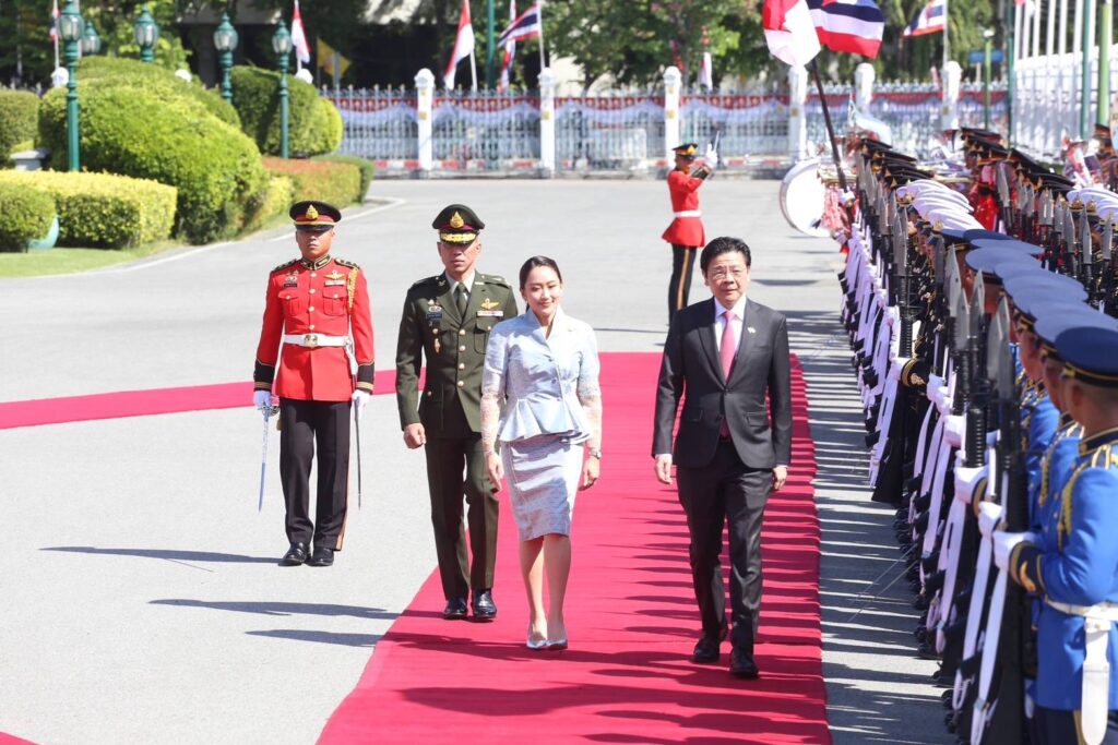 นางสาวแพทองธาร ชินวัตร นายกรัฐมนตรี ให้การต้อนรับนายลอเรนซ์ หว่อง (H.E. Mr. Lawrence Wong) นายกรัฐมนตรีสาธารณรัฐสิงคโปร์ ที่เดินทางเยือนประเทศไทยอย่างเป็นทางการในฐานะแขกของรัฐบาล โดยนายกรัฐมนตรีสิงคโปร์ ถือเป็นผู้นำคนแรกที่เดินทางเยือนทำเนียบรัฐบาล หลังจากนายกรัฐมนตรีแพทองธารเข้ารับตำแหน่ง โดยได้ร่วมในพิธีตรวจแถวกองทหารเกียรติยศ ณ บริเวณสนามหญ้าหน้าตึกไทยคู่ฟ้า ทำเนียบรัฐบาล