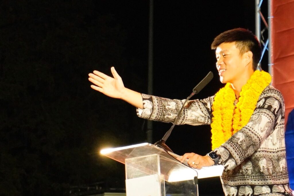ทั้งนี้ นายณัฐพงษ์ กล่าวว่า ตนดีใจที่ได้มาขึ้นปราศรัยกับพี่น้องชาวสงขลา ในฐานะหัวหน้าพรรคประชาชน ส่วนตัวตนผูกพันกับพี่น้องชาวสงขลาเป็นอย่างยิ่ง ได้มีโอกาสเดินทางมาเยี่ยมพี่น้องชาวสงขลา ที่ประสบอุทกภัยเมื่อปลายเดือนพฤศจิกายนที่ผ่านมาร่วมกับนายนิรันดร์ ได้เห็นการทำงานของเขามาโดยตลอด ถือเป็นคนที่ชัดเจนทั้งอุดมการณ์และความพร้อม อยู่กับพวกเรามาตั้งแต่อดีตอนาคตใหม่ ก้าวไกล และพรรคประชาชน เรียกได้ว่ากรีดเลือกออกมาเป็นสีส้ม นายนิรันดร์เคยประกอบอาชีพเป็นพนักงานต้อนรับบนเครื่องบินและข้าราชการครู คลุกคลีมีประสบการณ์ในการทำงานมาแล้วทั้งภาครัฐและเอกชนจึงรู้ว่าการเป็นนายก อบจ.สงขลา เราจะพัฒนาเมืองสงขลาได้อย่างไร