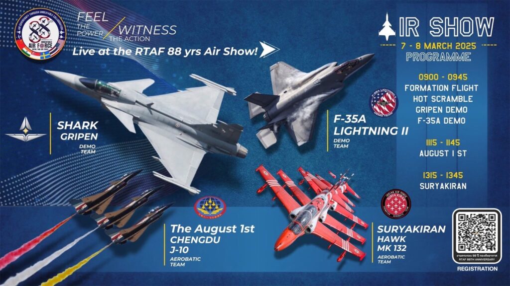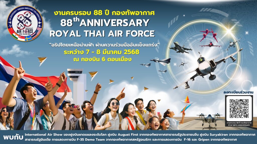 ทอ.จัดงาน International Airshow ครบรอบ 88 ปี กองทัพอากาศไทย สหรัฐ จีน สวีเดน ร่วมบินโชว์ 7-8 มี ค.แสดงศักยภาพอุตสาหกรรมป้องกันประเทศ