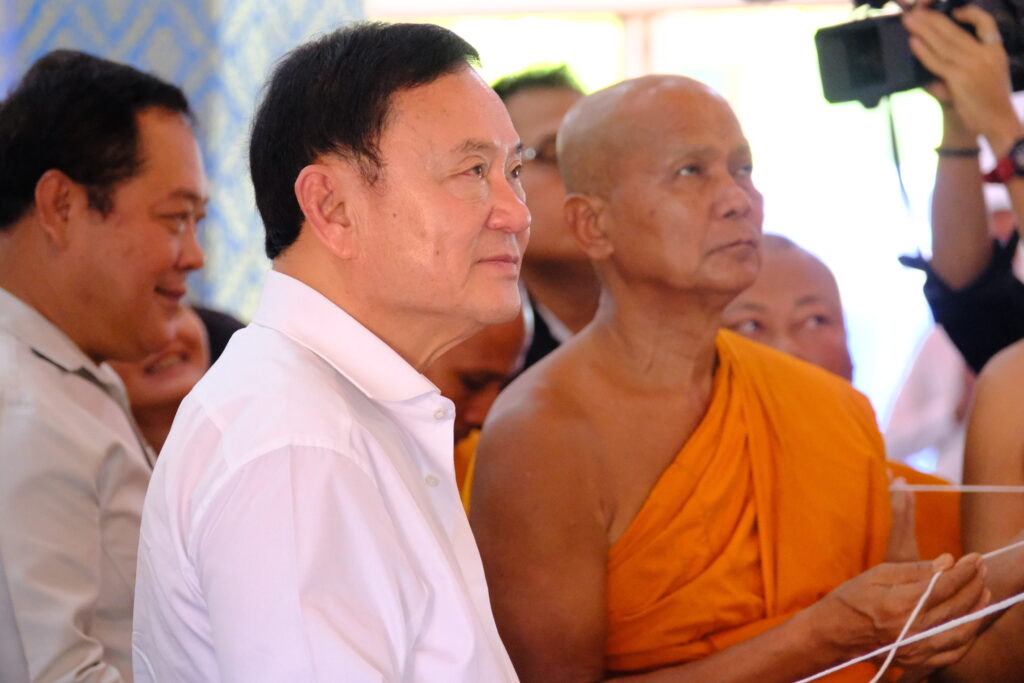 “ทักษิณ” ลงเมืองคอนทำบุญยกฉัตร เผย นายกฯ จ่อใช้เงินค้างท่อแก้ศก.