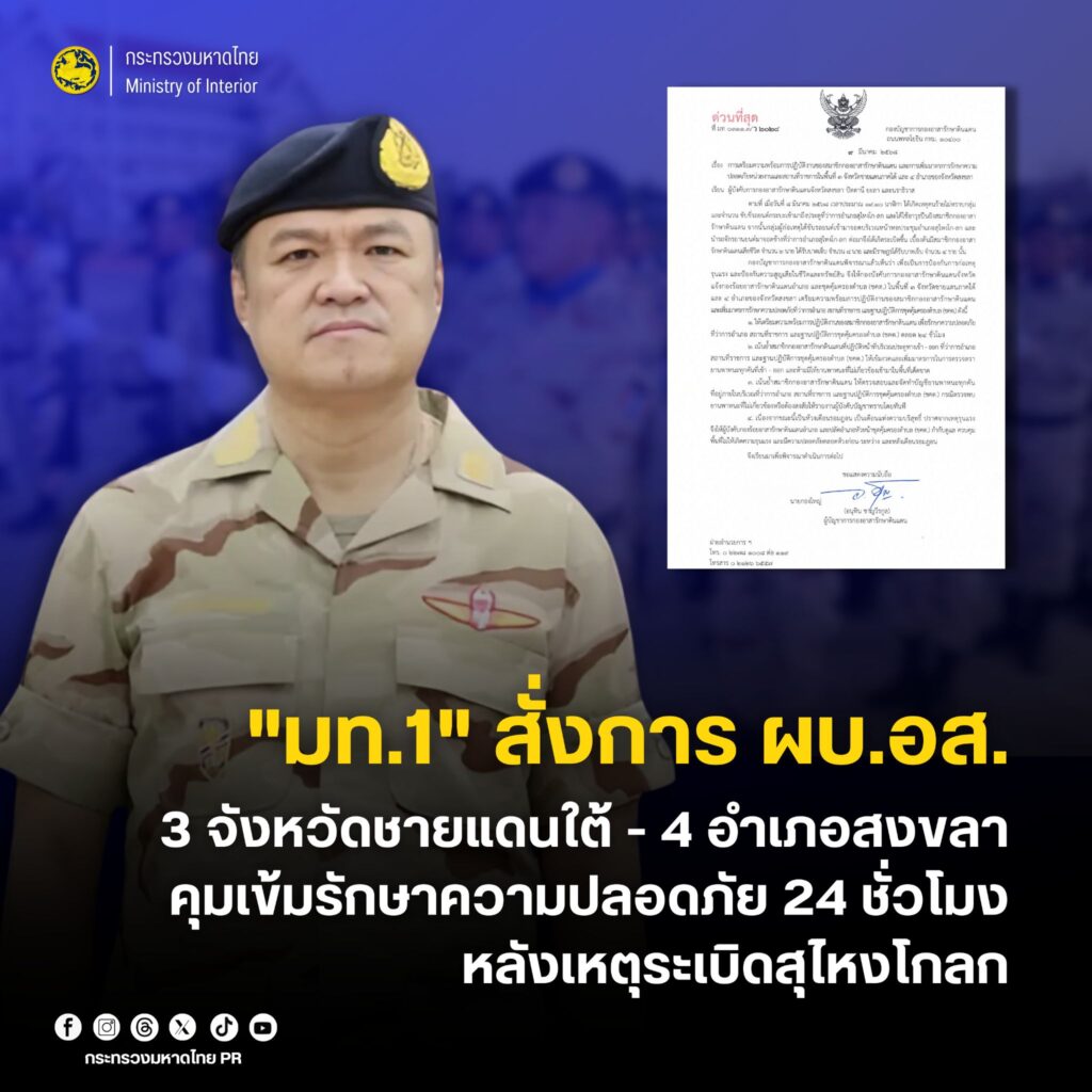 น.ส.ไตรศุลี ไตรสรณกุล เลขานุการรัฐมนตรีว่าการกระทรวงมหาดไทย และโฆษกกระทรวงมหาดไทย เปิดเผยว่า นายอนุทิน ชาญวีรกูล รองนายกรัฐมนตรีและรัฐมนตรีว่าการกระทรวงมหาดไทยในฐานะผู้บัญชาการกองอาสารักษาดินแดน ได้มีหนังสือสั่งการไปยังผู้ว่าราชการจังหวัดสงขลา ปัตตานี ยะลา และนราธิวาส ในฐานะผู้บังคับการกองอาสารักษาดินแดนจังหวัด เพิ่มมาตรการรักษาความปลอดภัยในพื้นที่