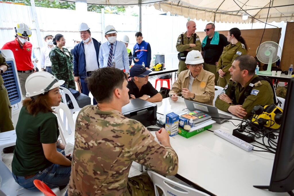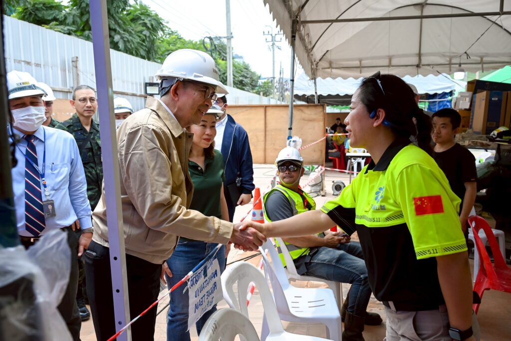 นายมาริษ เสงี่ยมพงษ์ รัฐมนตรีว่าการกระทรวงการต่างประเทศ เดินทางไปเยี่ยม และให้กำลังใจทีมกู้ภัยไทย และต่างประเทศ ประกอบด้วย สหรัฐอเมริกา อิสราเอล จีน รวมทั้งไต้หวันที่ร่วมทำงานกันอย่างหนักในภารกิจค้นหา และช่วยชีวิตผู้ประสบภัยตึกถล่มใกล้สวนจตุจักร ท่ามกลางความกังวลเกี่ยวกับสถานการณ์ของผู้ที่ยังติดอยู่ในซากตึกถล่มจำนวนมากพร้อมเปิดเผยว่า