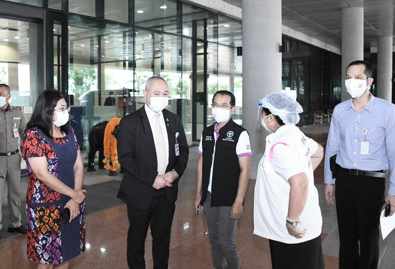 จำนวน 30 คน โดยมี นายนัฑ ผาสุข เลขาธิการวุฒิสภา เข้าตรวจเยี่ยมและให้กำลังใจบุคลากรกลุ่มเสี่ยง รวมทั้งขอบคุณเจ้าหน้าที่จากกรมควบคุมโรคที่เข้าทำการตรวจหาเชื้อในครั้งนี้ สำหรับผลการตรวจหาเชื้อจะทราบภายใน 3 วัน