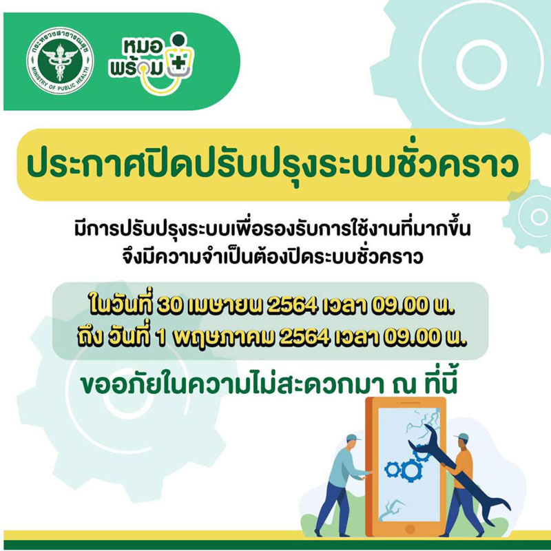เรียนผู้ใช้งานทุกท่าน “LINE OA หมอพร้อม” ปิดปรับปรุงระบบชั่วคราว