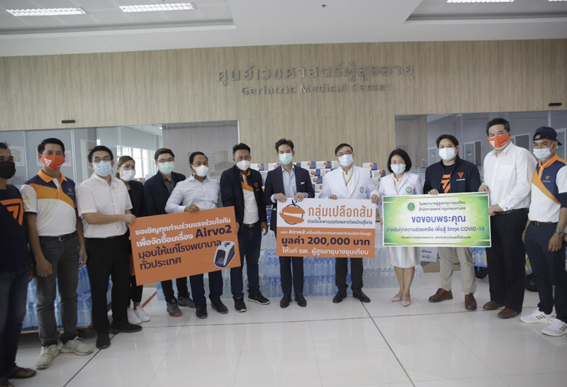 นายพิธา ลิ้มเจริญรัตน์ หัวหน้าพรรคก้าวไกล พร้อมด้วย ส.ส. และว่าที่ผู้สมัคร ส.ก. พรรคก้าวไกล เป็นตัวแทนในนามกลุ่มเปลือกส้ม เข้ามอบเครื่องให้อากาศผสมออกซิเจนอัตราไหลสูง (Airvo2) และสิ่งของจำเป็นสำหรับดูแลผู้ป่วยโควิด-19 ให้กับโรงพยาบาลสนาม ที่โรงพยาบาลผู้สูงอายุ บางขุนเทียน ซึ่งเป็นหนึ่งในสถานที่ที่ให้การรักษาผู้ป่วยโควิด-19