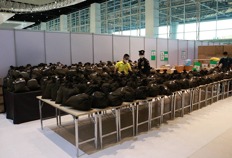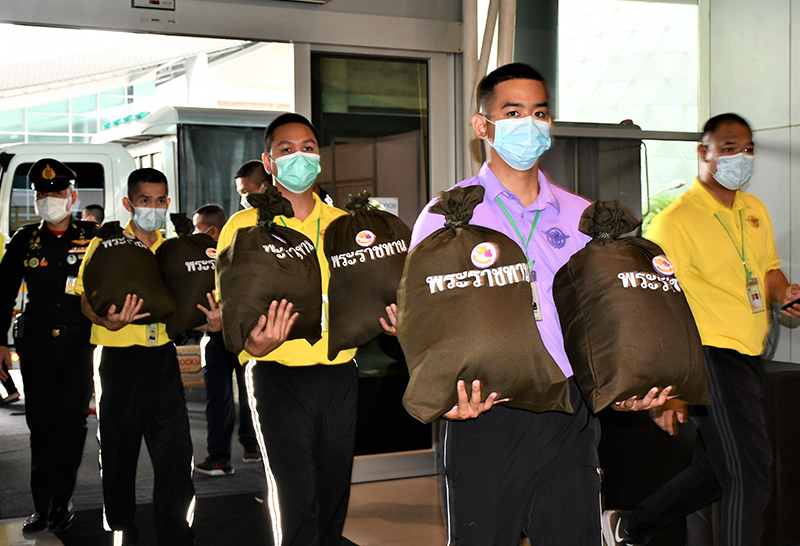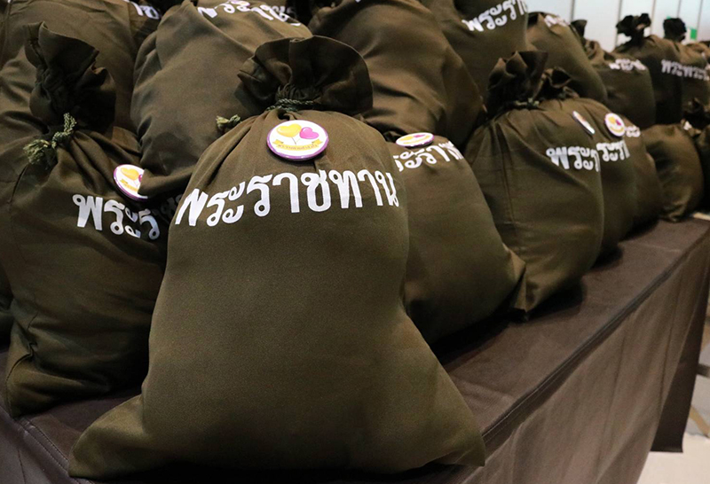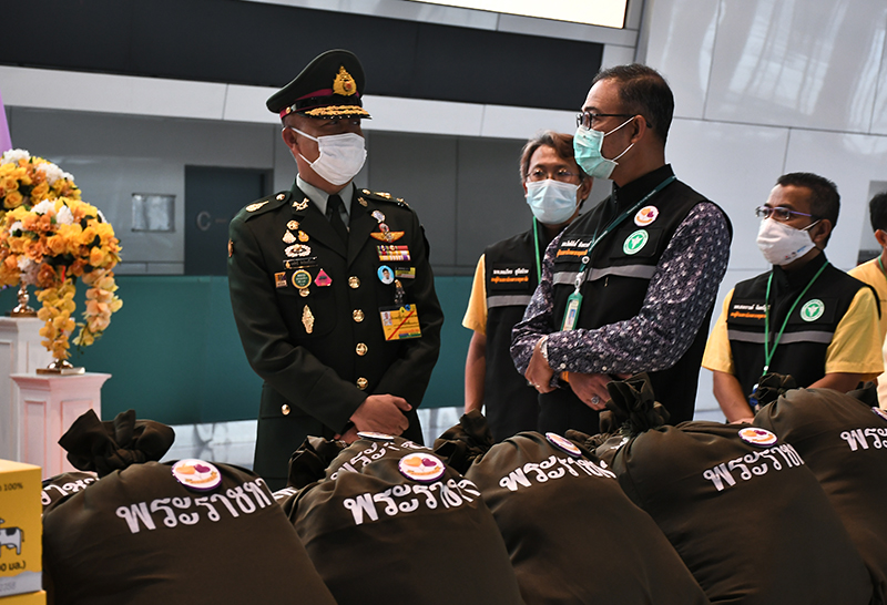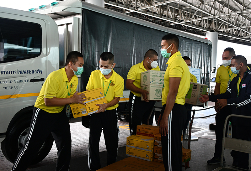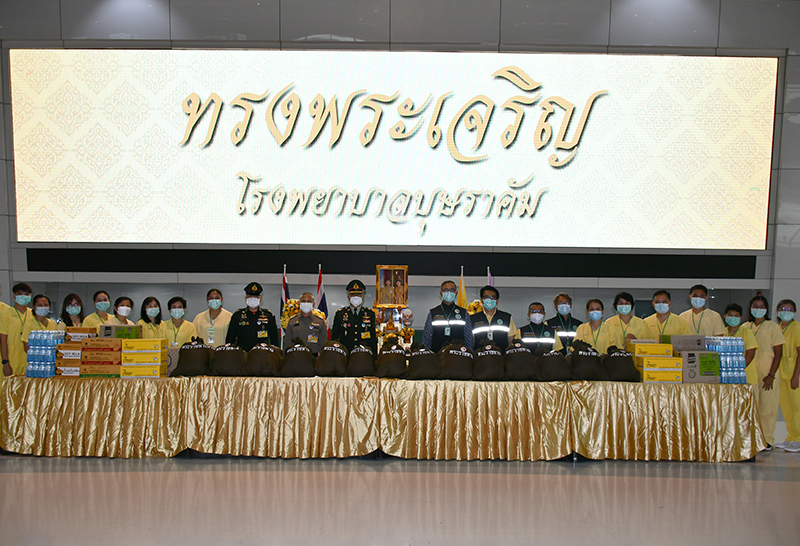 ในหลวง-พระราชินี พระราชทาน “ถุงพระราชทานกำลังใจ” อาหาร นมและน้ำดื่ม แก่บุคลากรทางการแพทย์ ณ รพ.บุษราคัม