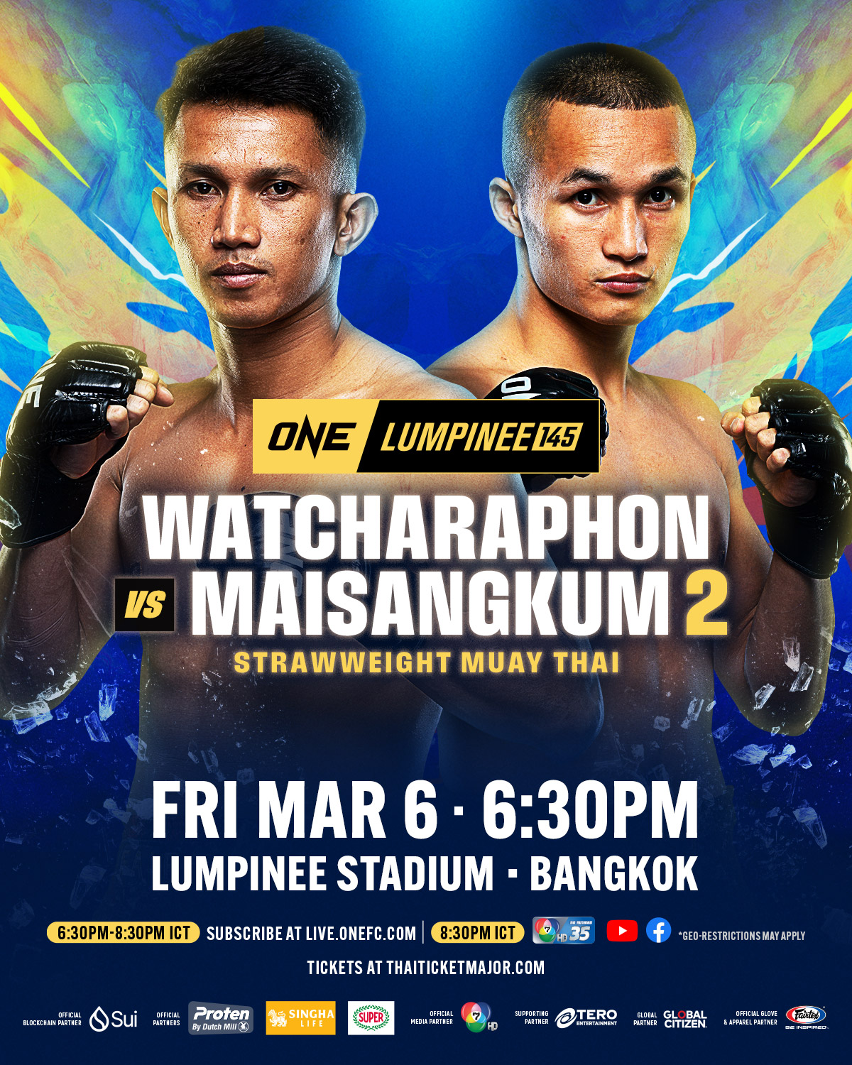ศึก ONE ลุมพินี 145 เริ่มการแข่งขันคู่แรกเวลา 18.30 น. จองบัตรเข้าชมในสนามได้ทาง THAI TICKET MAJOR