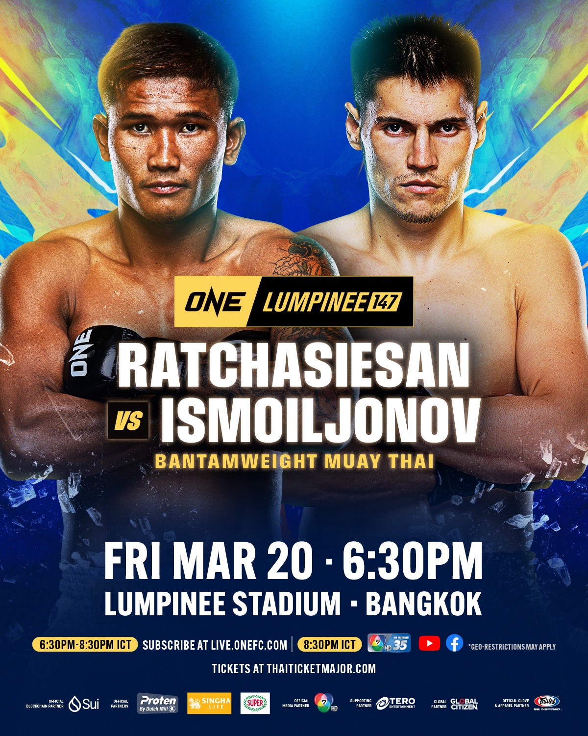 ศึก ONE ลุมพินี 147 เริ่มการแข่งขันคู่แรกเวลา 18.30 น. จองบัตรเข้าชมในสนามได้ทาง THAI TICKET MAJOR